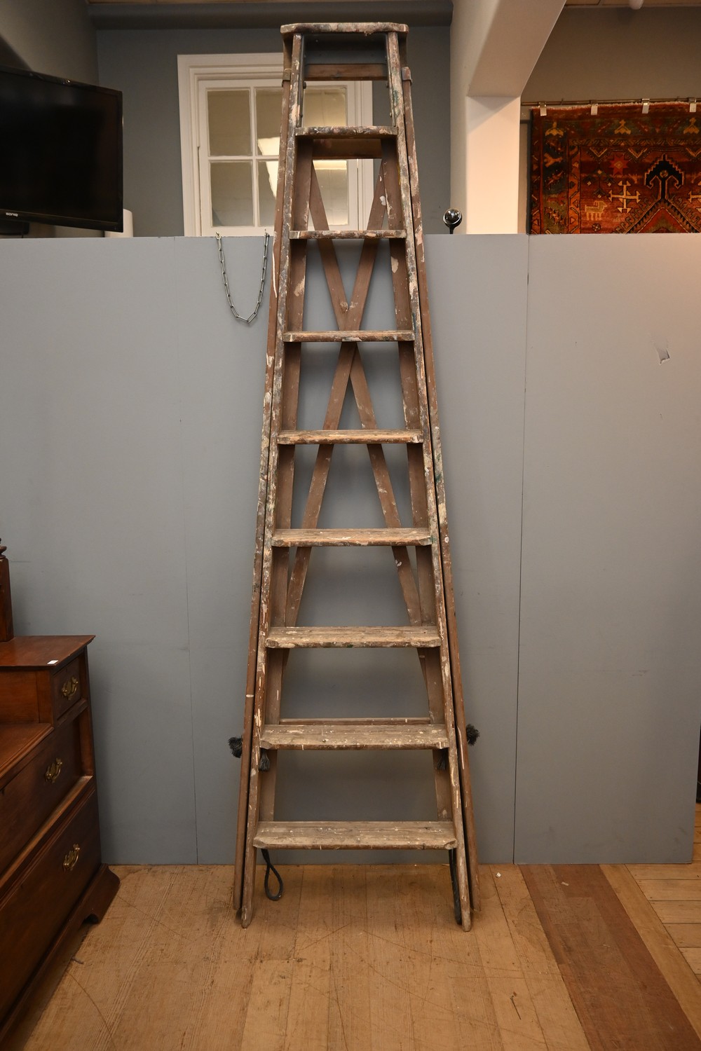 A VINTAGE TIMBER LADDER (A/F) (270H X 78W CM) (PLEASE NOTE THIS HEAVY ITEM MUST BE REMOVED BY CARRIERS AT THE CUSTOMER'S EXPENSE. LEONARD JOEL STAFF CANNOT ASSIST CARRYING THIS ITEM) (X-LARGE ITEM)