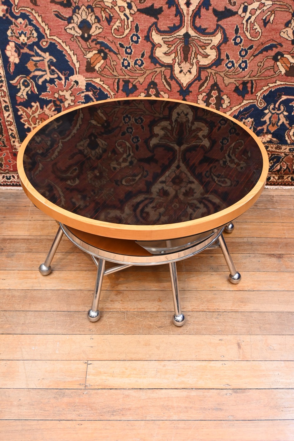 A CONTEMPORARY CIRCULAR CHROME COFFEE TABLE (51H X 91DIA CM) (PLEASE NOTE THIS HEAVY ITEM MUST BE REMOVED BY CARRIERS AT THE CUSTOMER'S EXPENSE. LEONARD JOEL STAFF CANNOT ASSIST CARRYING THIS ITEM) (X-LARGE ITEM)
