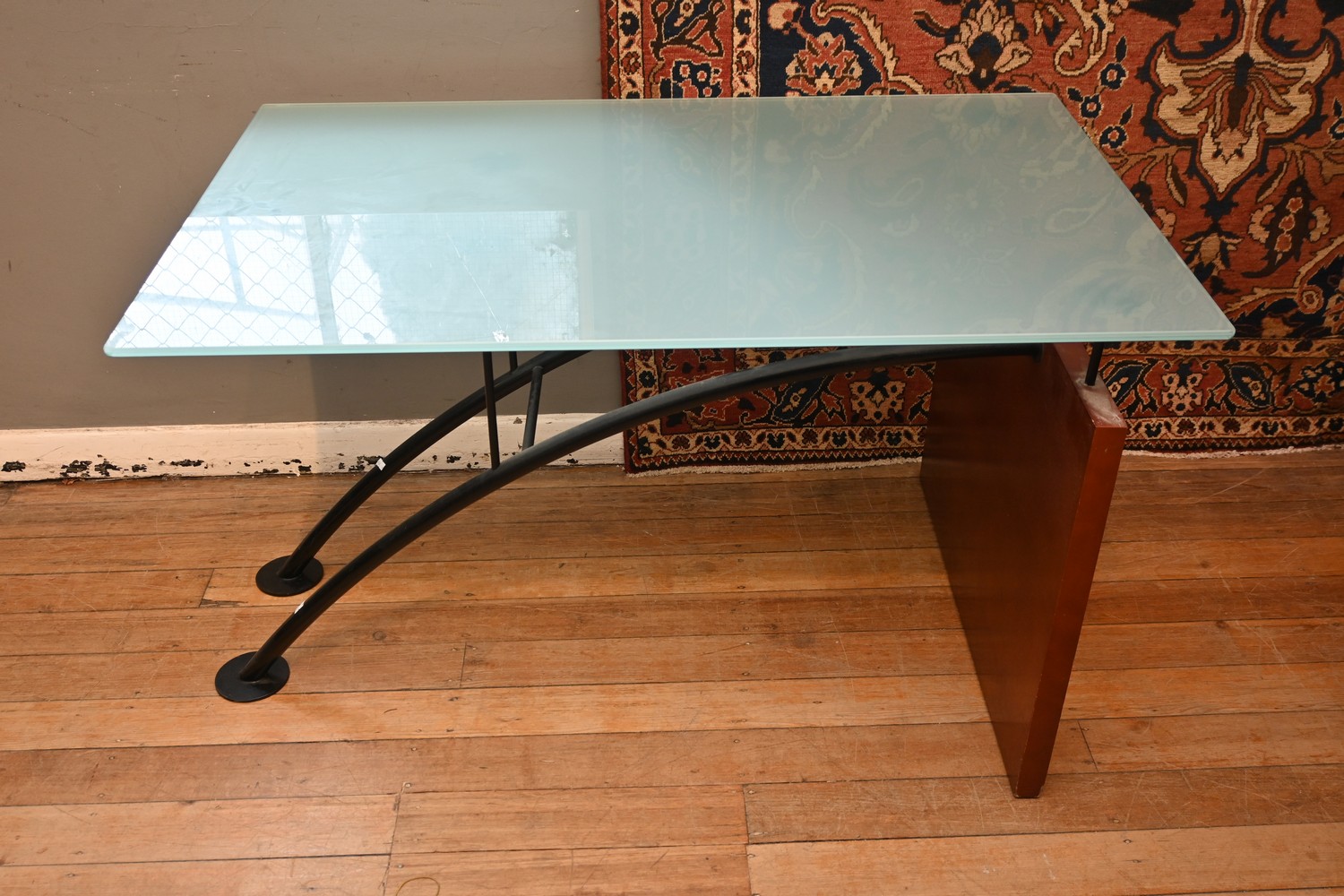AN ITALIAN GLASS TOP DESK (A/F) (71H XZ 125W X 80D CM) (PLEASE NOTE THIS HEAVY ITEM MUST BE REMOVED BY CARRIERS AT THE CUSTOMER'S EXPENSE. LEONARD JOEL STAFF CANNOT ASSIST CARRYING THIS ITEM) (X-LARGE ITEM)