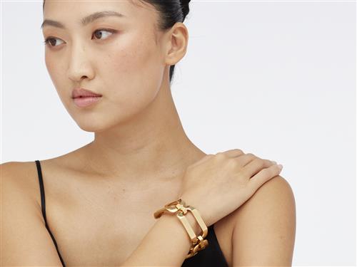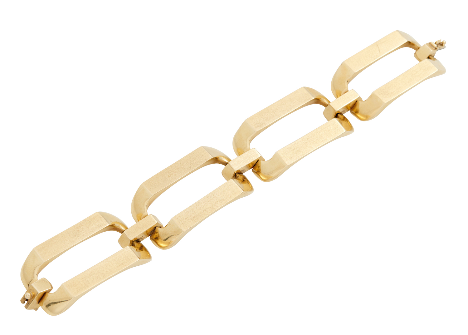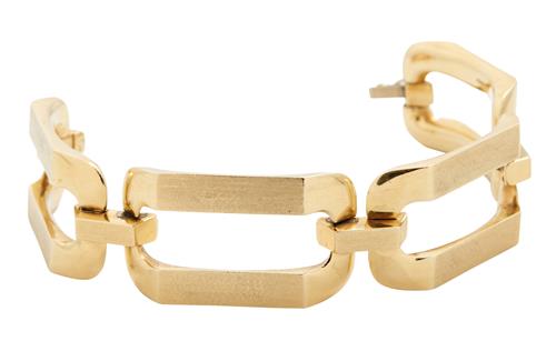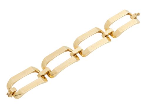 Composed of open rectangular links, completed by a concealed tongue and groove clasp,