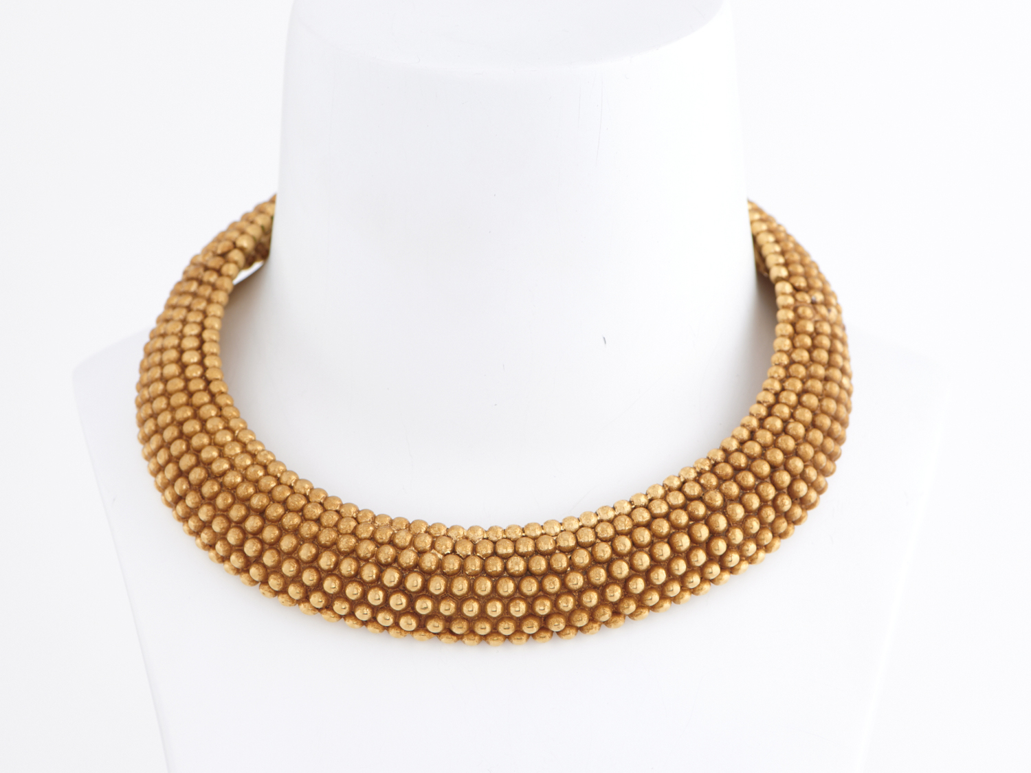 YVES SAINT LAURENT, A VINTAGE RIGID COLLAR IN GOLD PLATE, CIRCA 1980'S, INTERNAL MEASUREMENTS 122 X 110MM