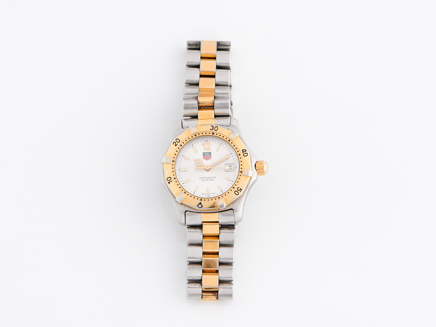 TAG HEUER, A LADY'S BRACELET WATCH WITH DATE APPERTURE, IN TWO TONE STAINLESS STEEL, QUARTZ MOVEMENT, THE DIAL 26MM