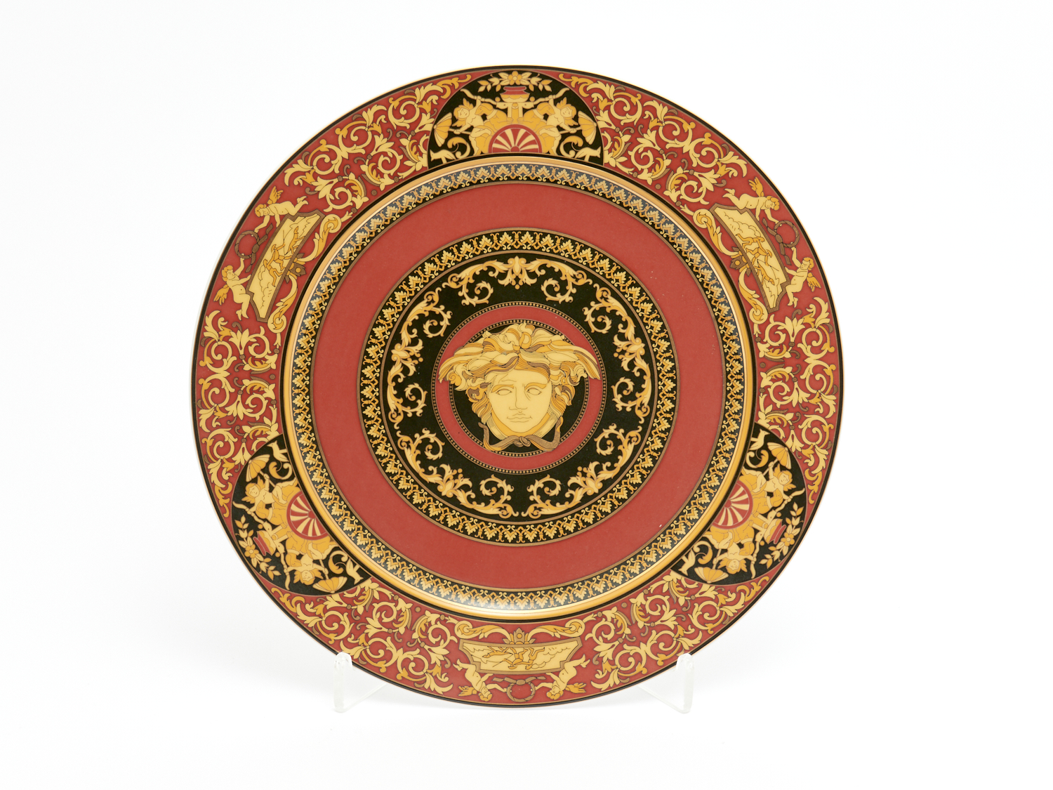 A VERSACE PLATE WITH STAND DIA.31CM, LEONARD JOEL LOCAL DELIVERY: SMALL