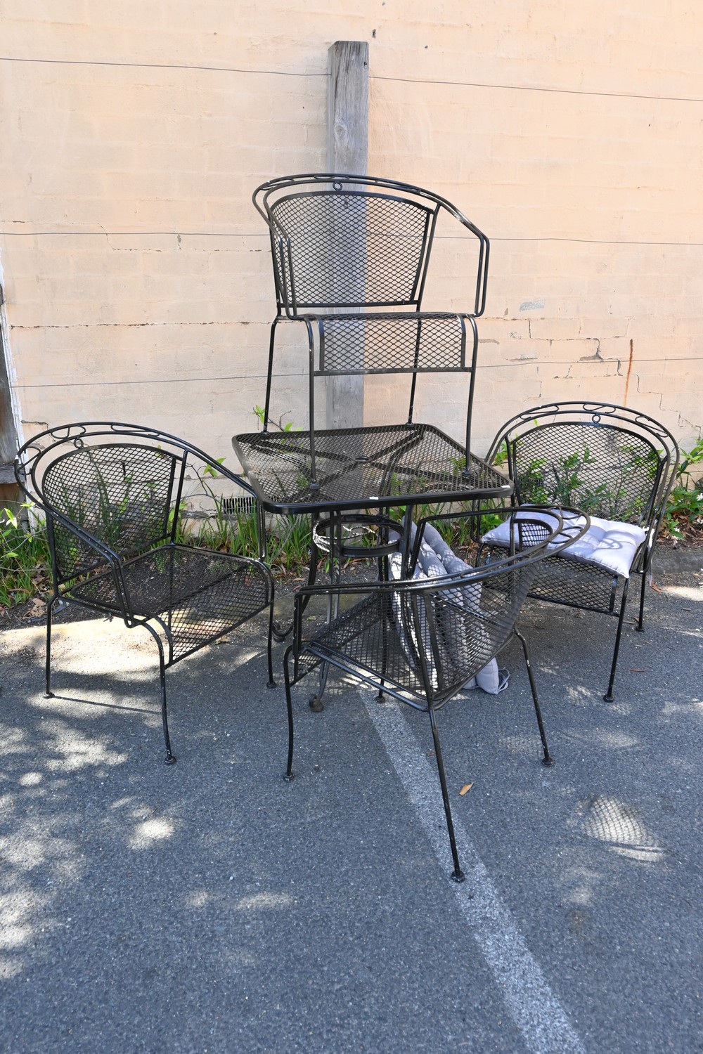 A FIVE PIECE OUTDOOR SETTING (74H X 71W X 71D CM) (PLEASE NOTE THIS HEAVY ITEM MUST BE REMOVED BY CARRIERS AT THE CUSTOMER'S EXPENSE. LEONARD JOEL STAFF CANNOT ASSIST CARRYING THIS ITEM) (X-LARGE ITEM)