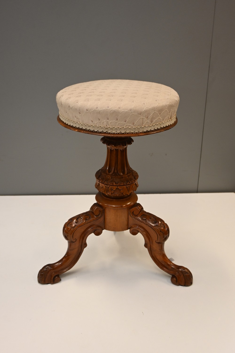 A VICTORIAN WALNUT PIANO STOOL (A/F) (50H X 42DIA CM) (LEONARD JOEL DELIVERY SIZE: LARGE)