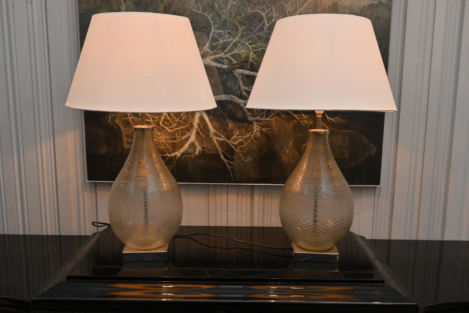 A PAIR OF BELLORA GLASS TABLE LAMPS (67H X 40D CM) (LEONARD JOEL DELIVERY SIZE: LARGE)