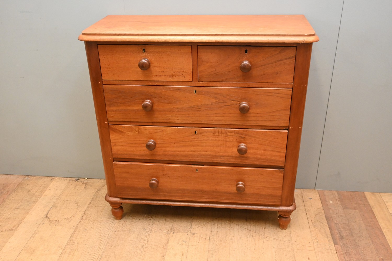 A VICTORIAN AUSTRALIAN CEDAR CHEST OF DRAWERS (A/F) (107H X 105W X 43D CM) (LEONARD JOEL DELIVERY SIZE: X-LARGE)