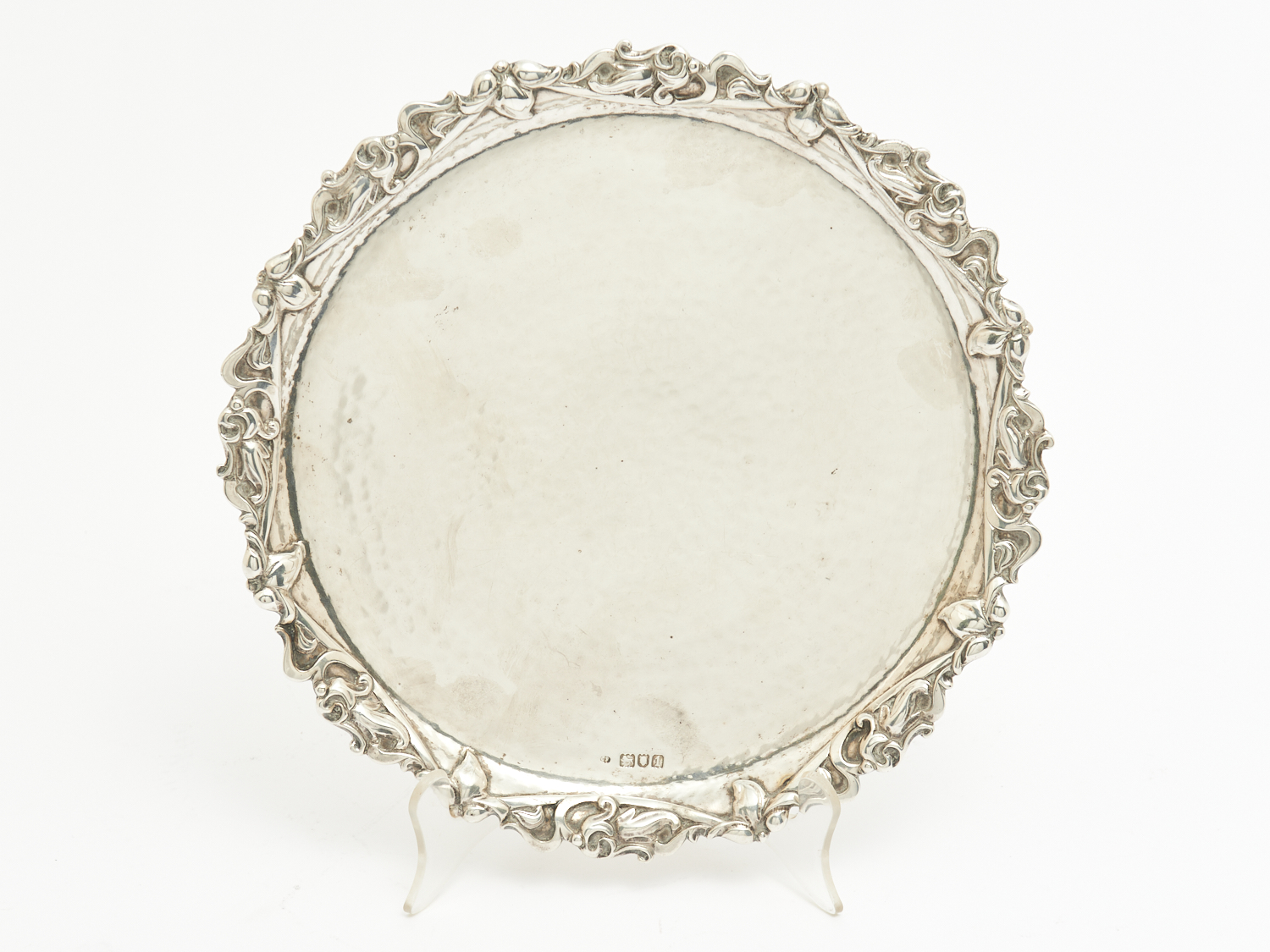 A HAND BEATEN STERLING SILVER SALVER, DIA 25.5CM, 771G, LEONARD JOEL LOCAL DELIVERY: SMALL