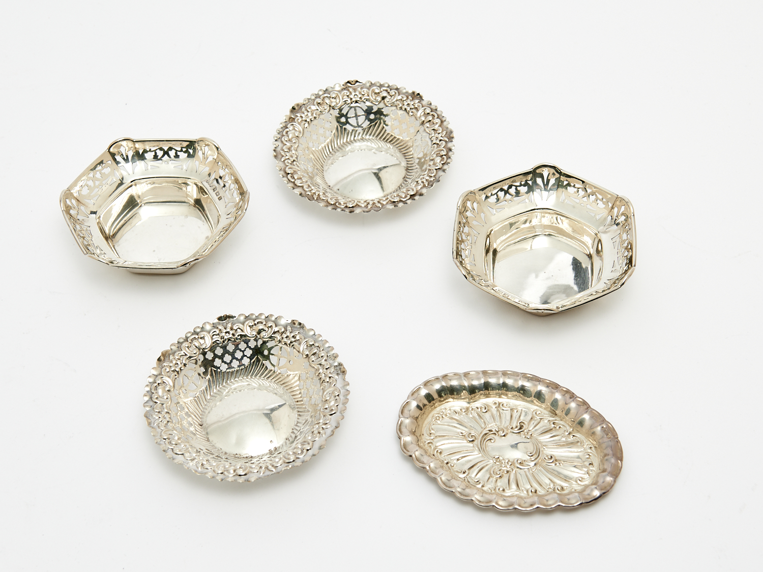 FIVE STERLING SILVER BON BON DISHES, DIA 9.5CM (LARGEST), LEONARD JOEL LOCAL DELIVERY: SMALL