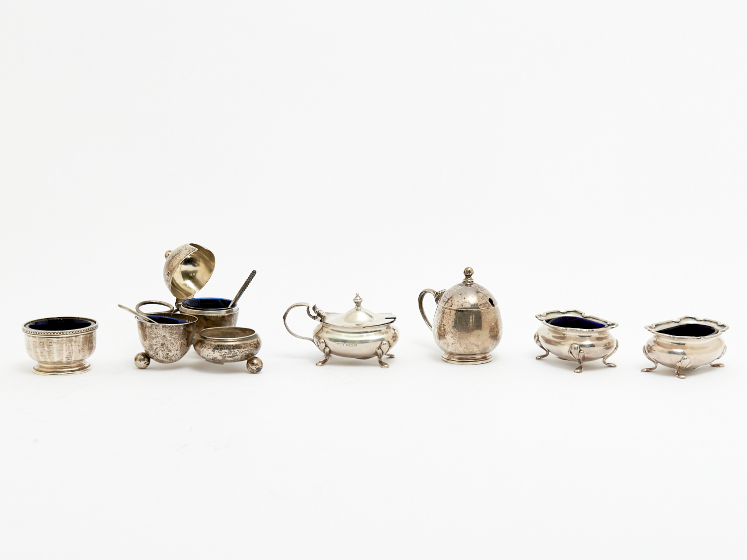 A GROUP OF STERLING SILVER SALTS AND CONDIMENT DISHES, H.6.5CM (TALLEST), LEONARD JOEL LOCAL DELIVERY: SMALL