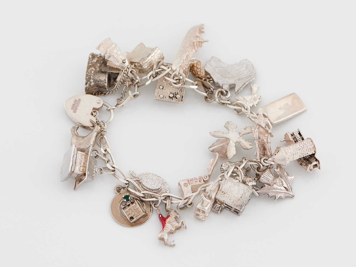 A CHARM BRACELET IN STERLING SILVER
