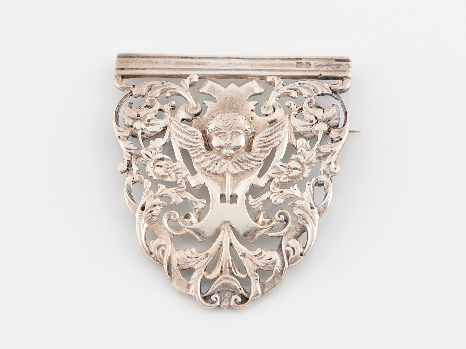 A LARGE EDWARDIAN BROOCH IN SILVER, HALLMARKED, 65 X 56MM