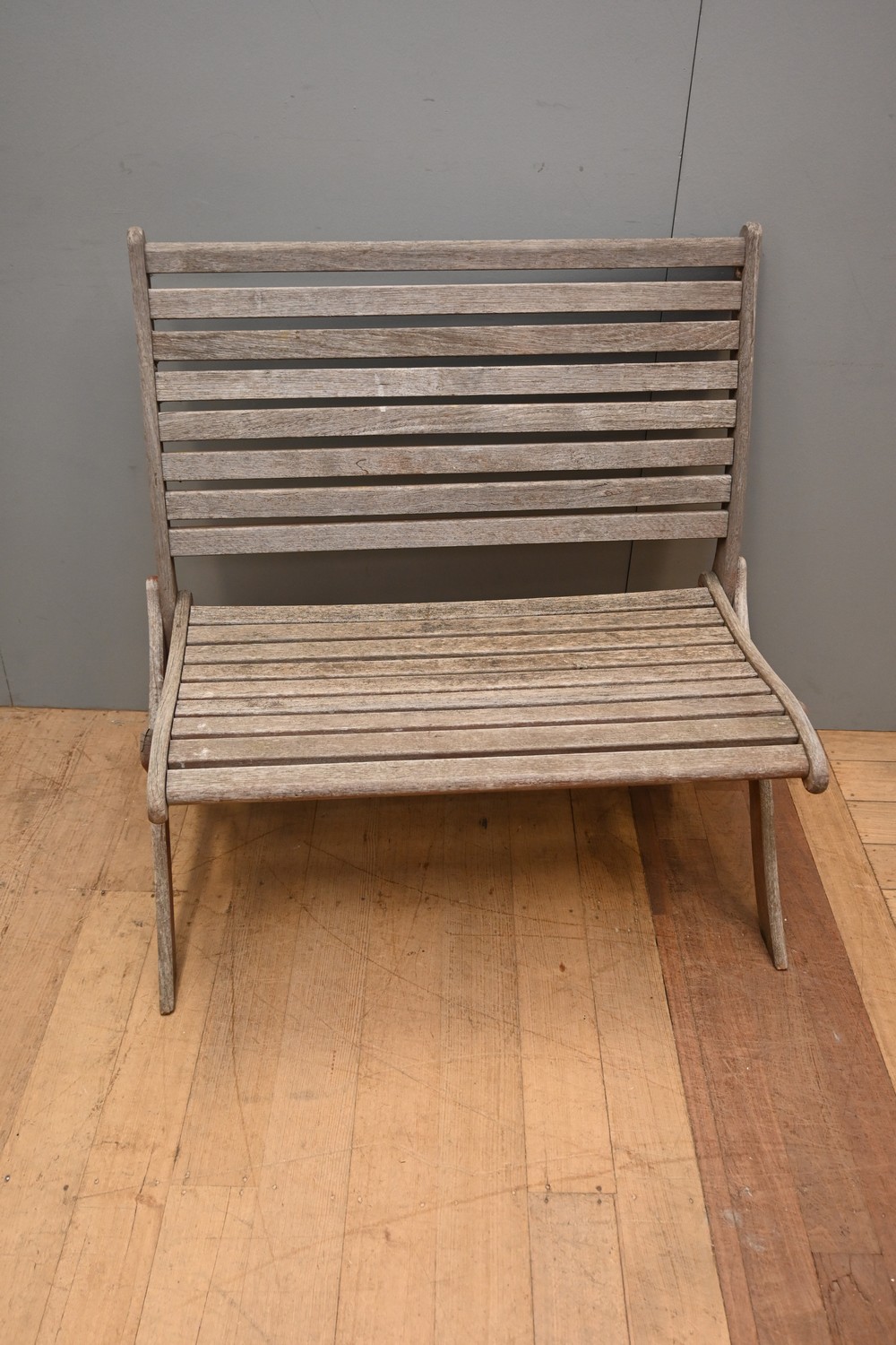 A TEAK OUTDOOR BENCH (A/F) (90H X 90W X 62D CM) (LEONARD JOEL DELIVERY SIZE: X-LARGE)