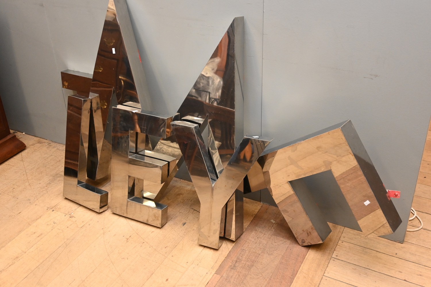 A COLLECITON OF ALUMINIUM LETTERS (90H X 92W CM) (LEONARD JOEL DELIVERY SIZE: LARGE)