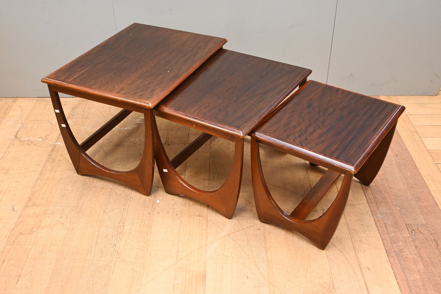 A MID CENUTRY STYLE SET OF NESTING TABLES (46H X 67W X 51D CM) (LEONARD JOEL DELIVERY SIZE: LARGE)
