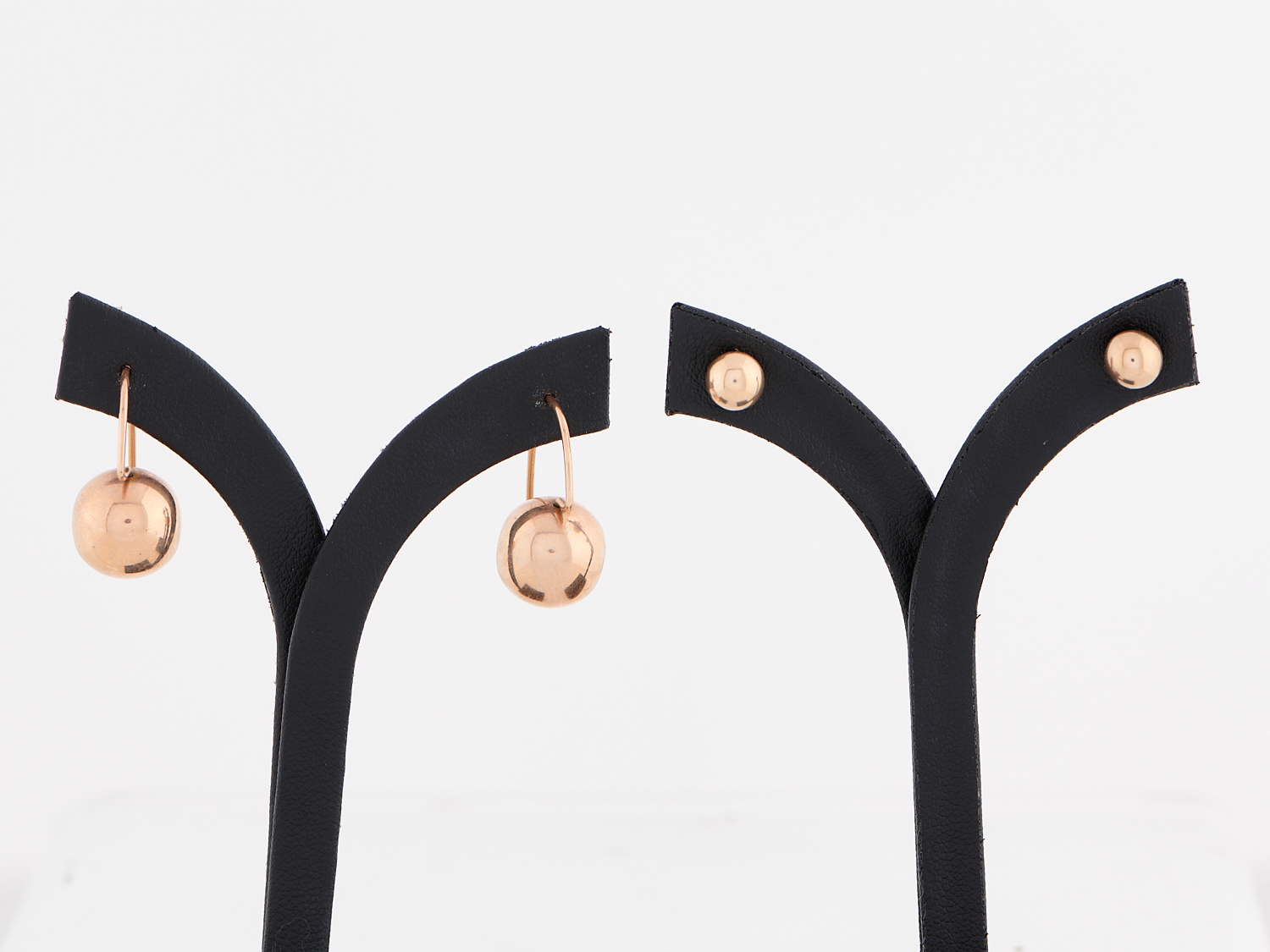 A PAIR OF BALL EARRINGS AND BALL STUDS IN 9CT GOLD, TO SHEPHERDS HOOK FITTINGS AND POST AND BUTTERFLY FITTINGS, TOTAL WEIGHT 5.0GMS