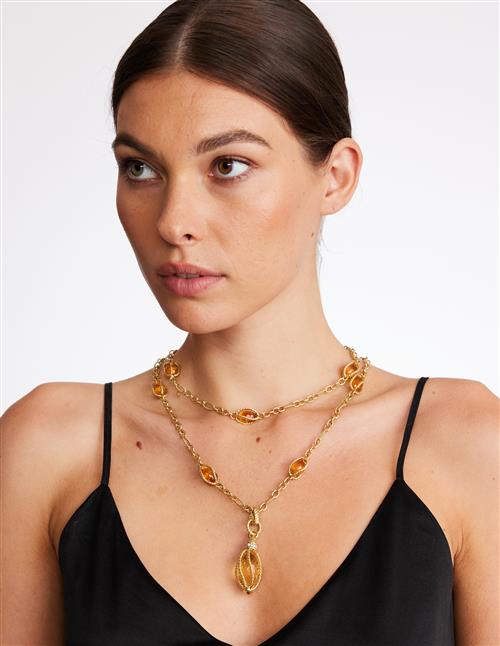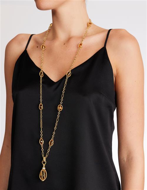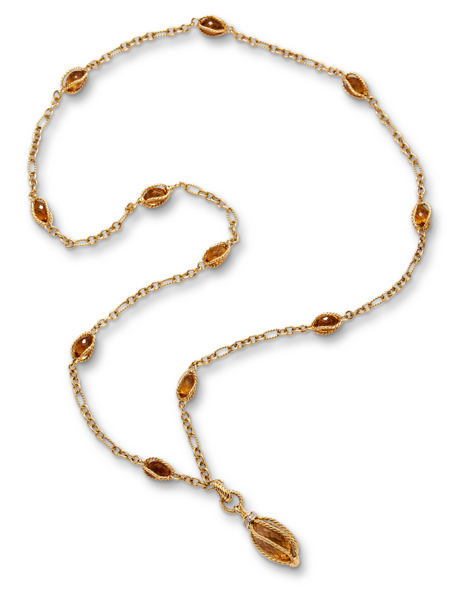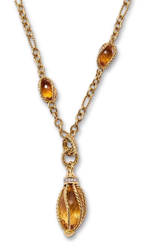 DAVID YURMAN 18CT GOLD, CITRINE AND DIAMOND LONGCHAIN PENDANT NECKLACE