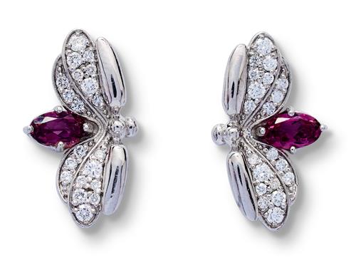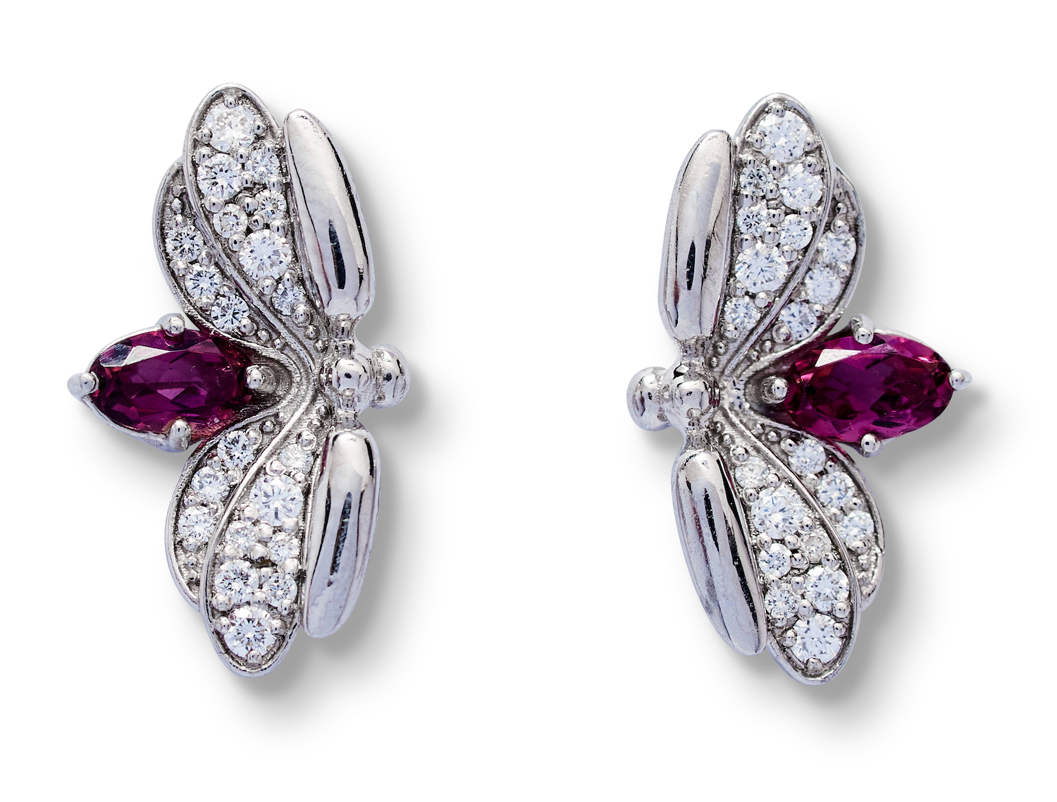 Each designed as a firefly, the thorax claw-set with a pink tourmaline, the wings pavé-set with brilliant-cut diamonds, the diamonds together weighing approximately 0.36 carats, mounted in platinum, length 10mm, width 17mm, post and scroll fittings, signed T&Co. for Tiffany & Co.