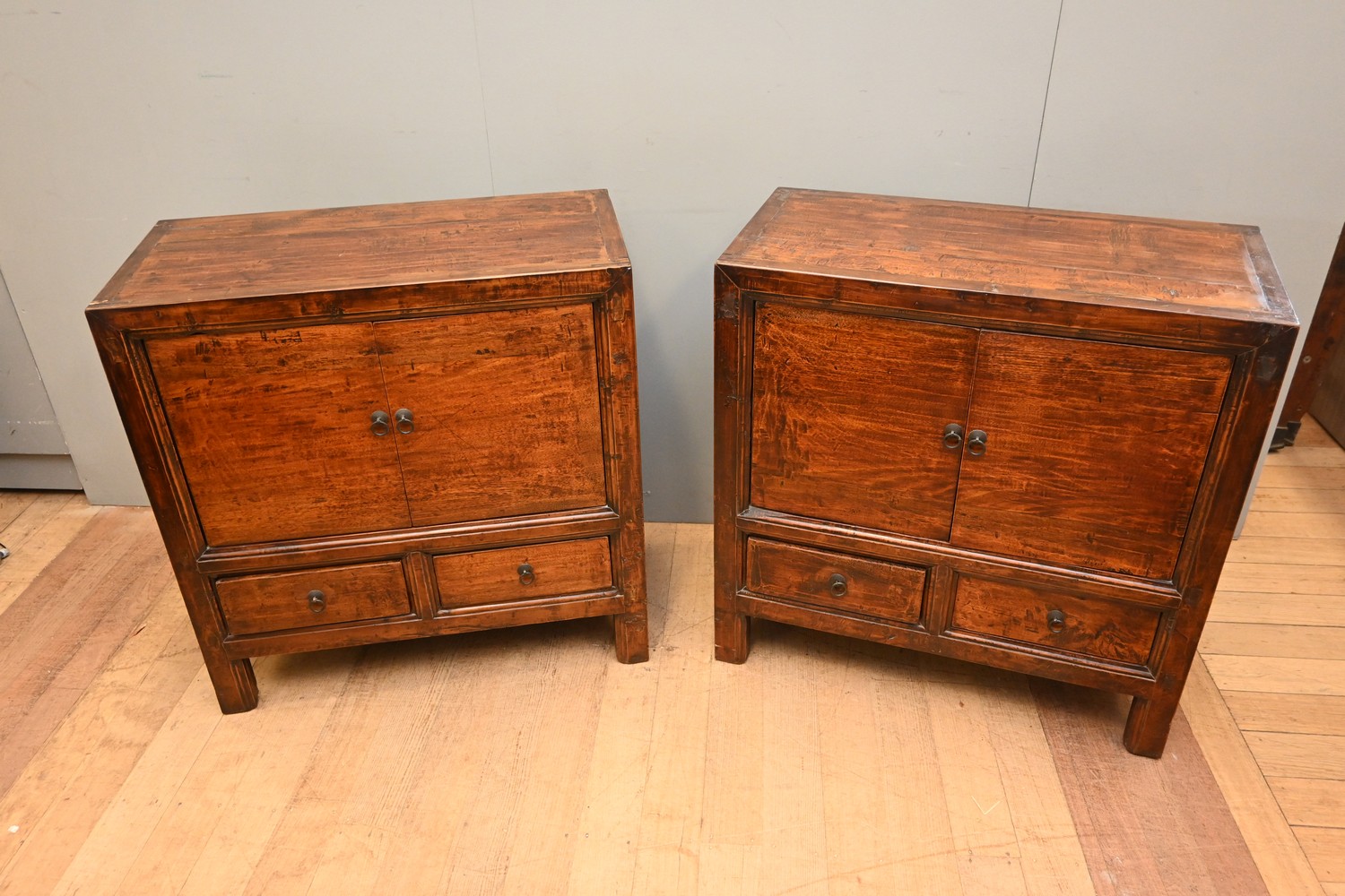 A PAIR OF CHINESE BEDSIDE CABINETS (88H X 86W X 42D CXM) (PLEASE NOTE THIS HEAVY ITEM MUST BE REMOVED BY CARRIERS AT THE CUSTOMER'S EXPENSE. LEONARD JOEL STAFF CANNOT ASSIST CARRYING THIS ITEM) (X-LARGE ITEM)