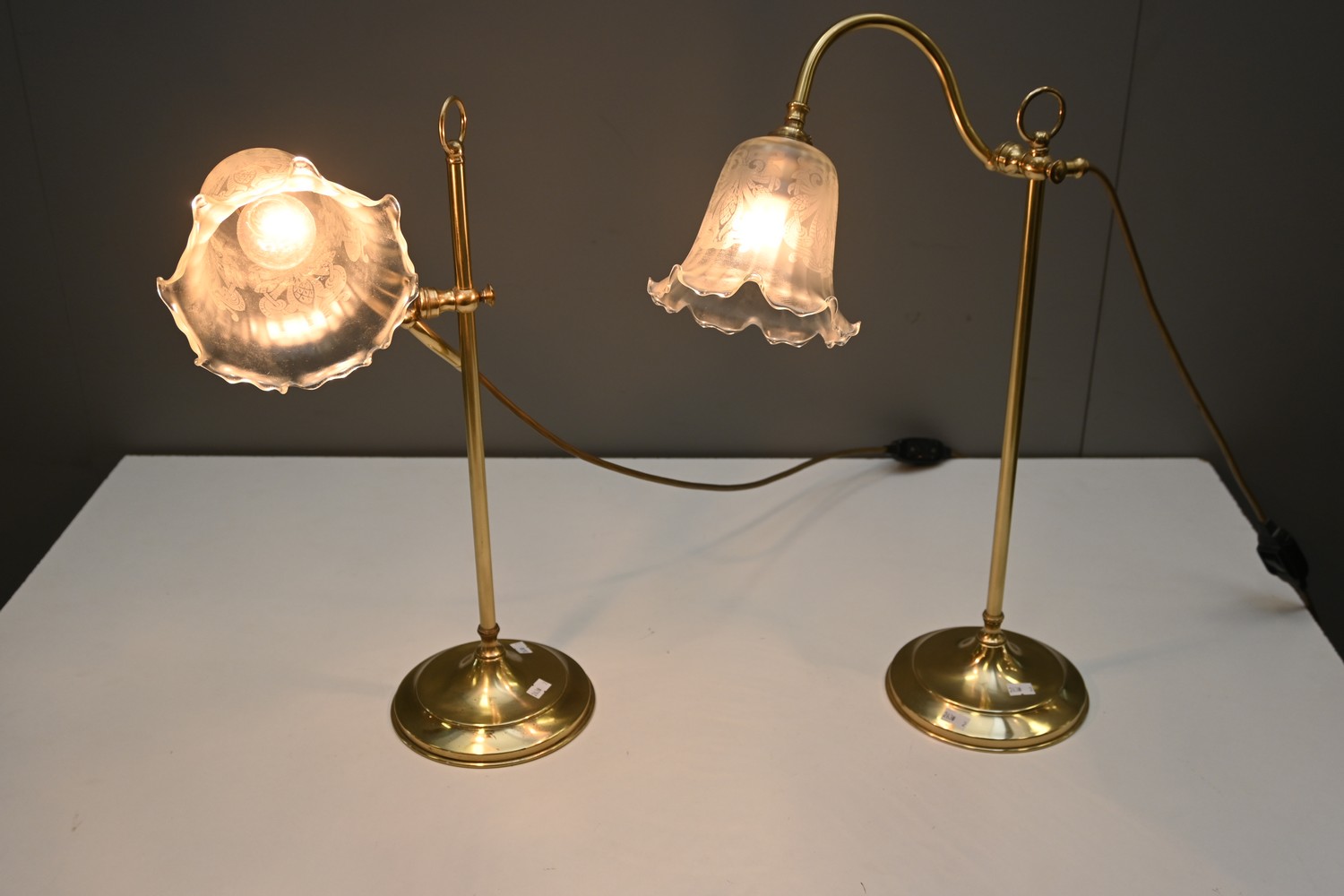 A PAIR OF BRASS TABLE LAMPS (A/F) (53H CM) (LEONARD JOEL DELIVERY SIZE: LARGE)
