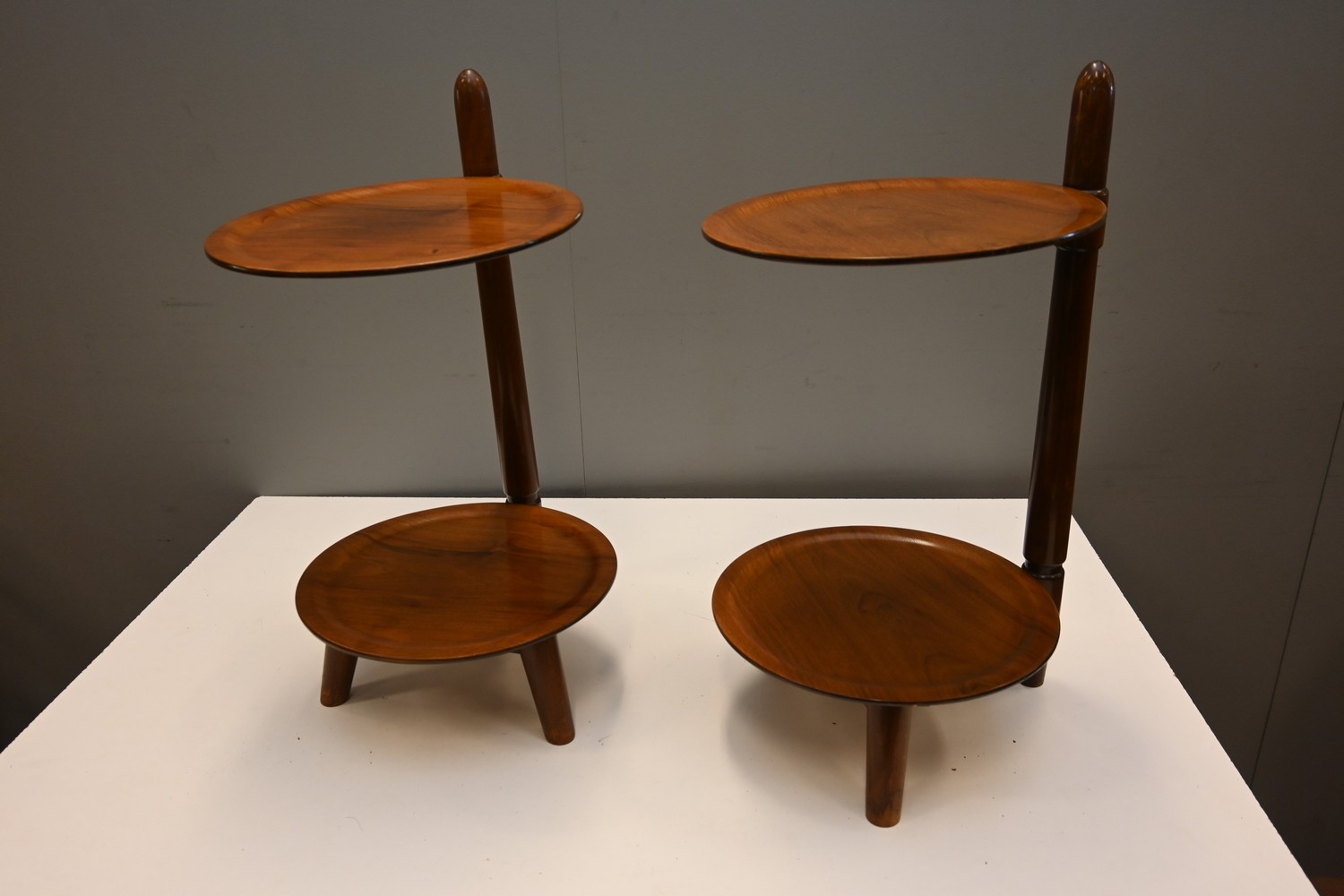A PAIR OF RETRO STYLE DANISH TWO TIER SIDE TABLES (62H X 32D CM) (LEONARD JOEL DELIVERY SIZE: MEDIUM)