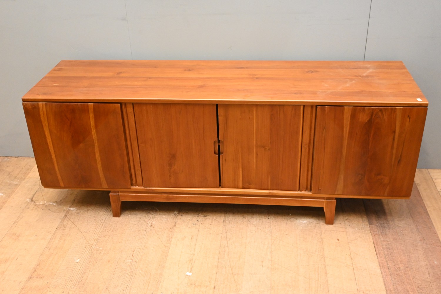 A SOLID TEAK DIAMOND FRONT SIDEBOARD (A/F) (60H X 161W X 45D CM) (PLEASE NOTE THIS HEAVY ITEM MUST BE REMOVED BY CARRIERS AT THE CUSTOMER'S EXPENSE. LEONARD JOEL STAFF CANNOT ASSIST CARRYING THIS ITEM) (X-LARGE ITEM)