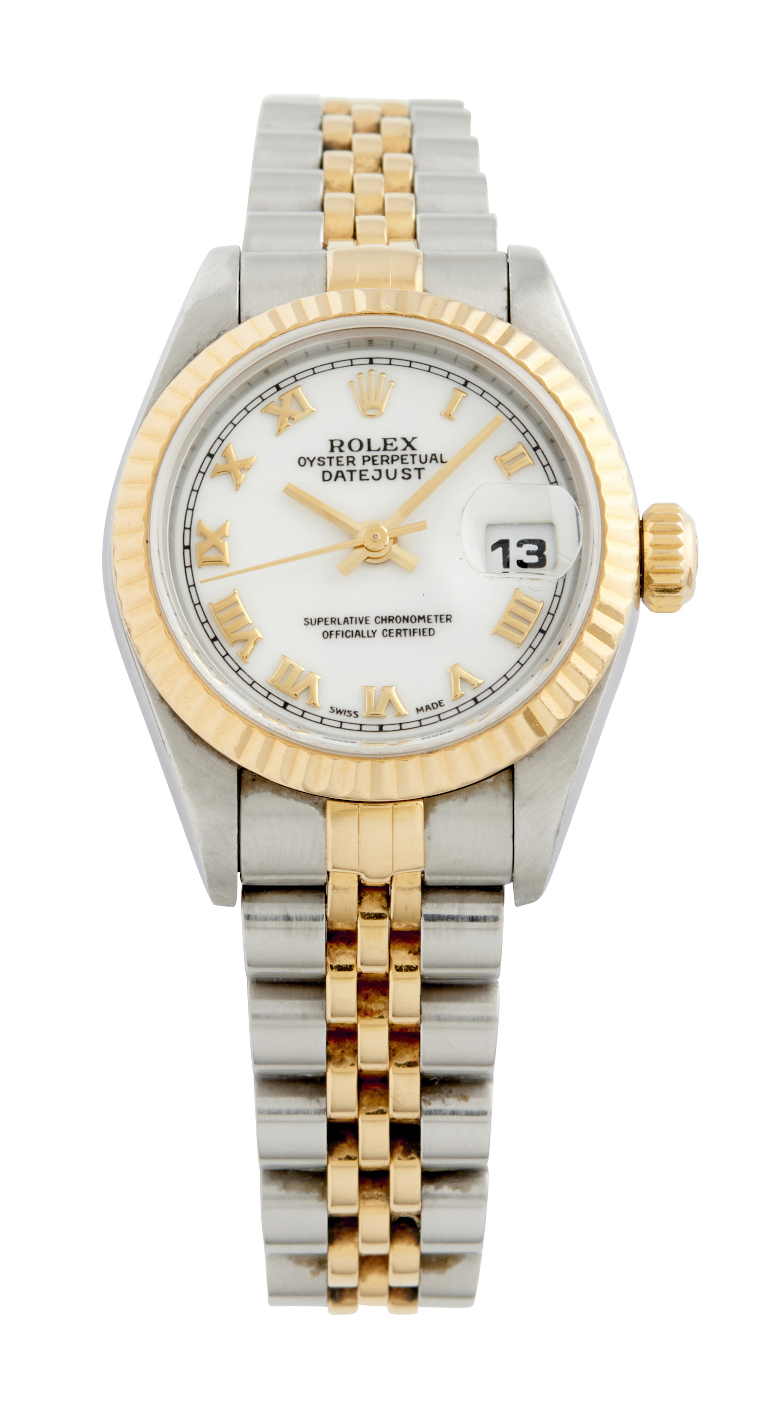 Closure: Rolex 18ct gold and stainless steel Jubilee link bracelet and folding clasp Dimensions: 26mm diameter, bracelet circumference approximately 145mm Signed: case, dial and movement