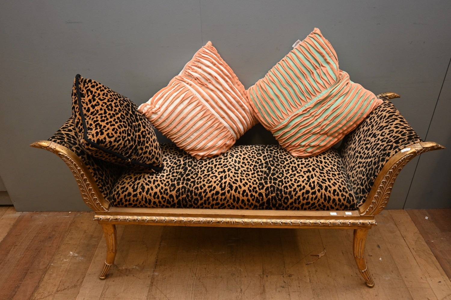 A FRENCH EMPIIRE-STYLE GILTWOOD AND UPHOLSTERED WINDOW SEAT (78H X 147W X 46D CM) (LEONARD JOEL DELIVERY SIZE: LARGE)