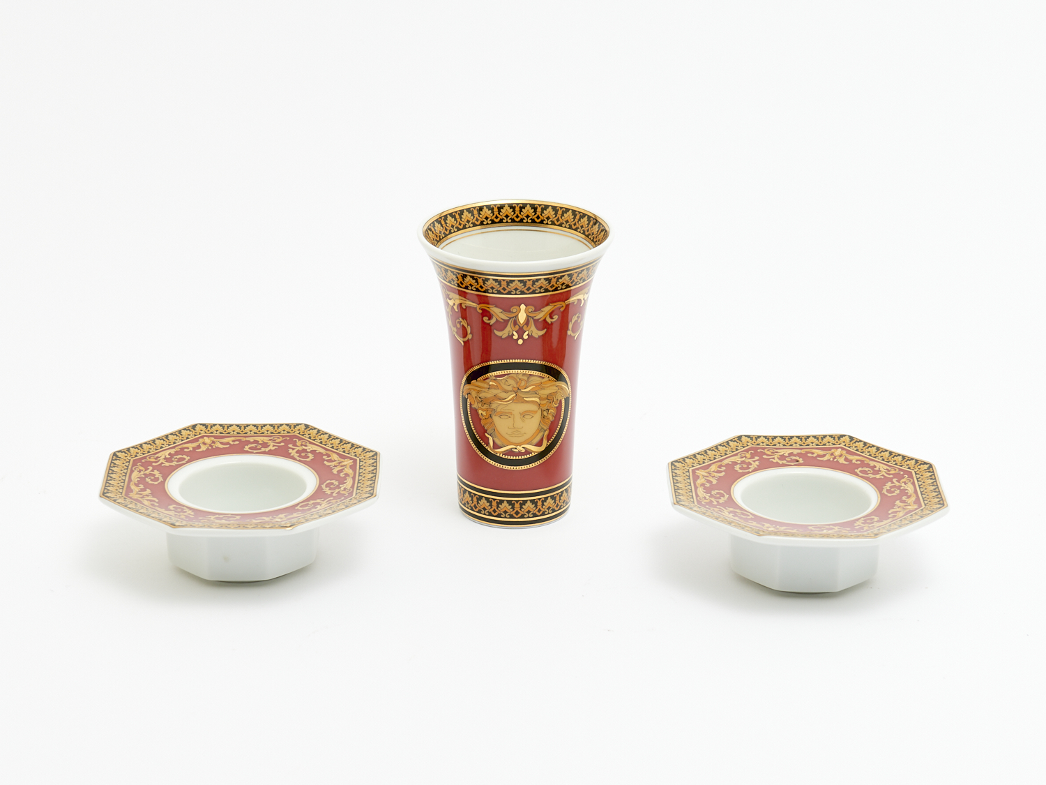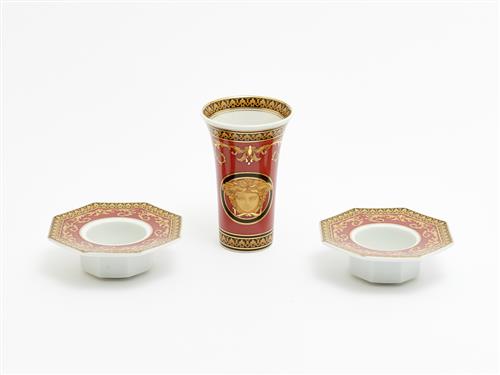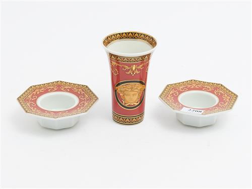TWO VERSACE OCTAGONAL DISHES AND A VASE H.20CM (TALLEST), LEONARD JOEL LOCAL DELIVERY: SMALL