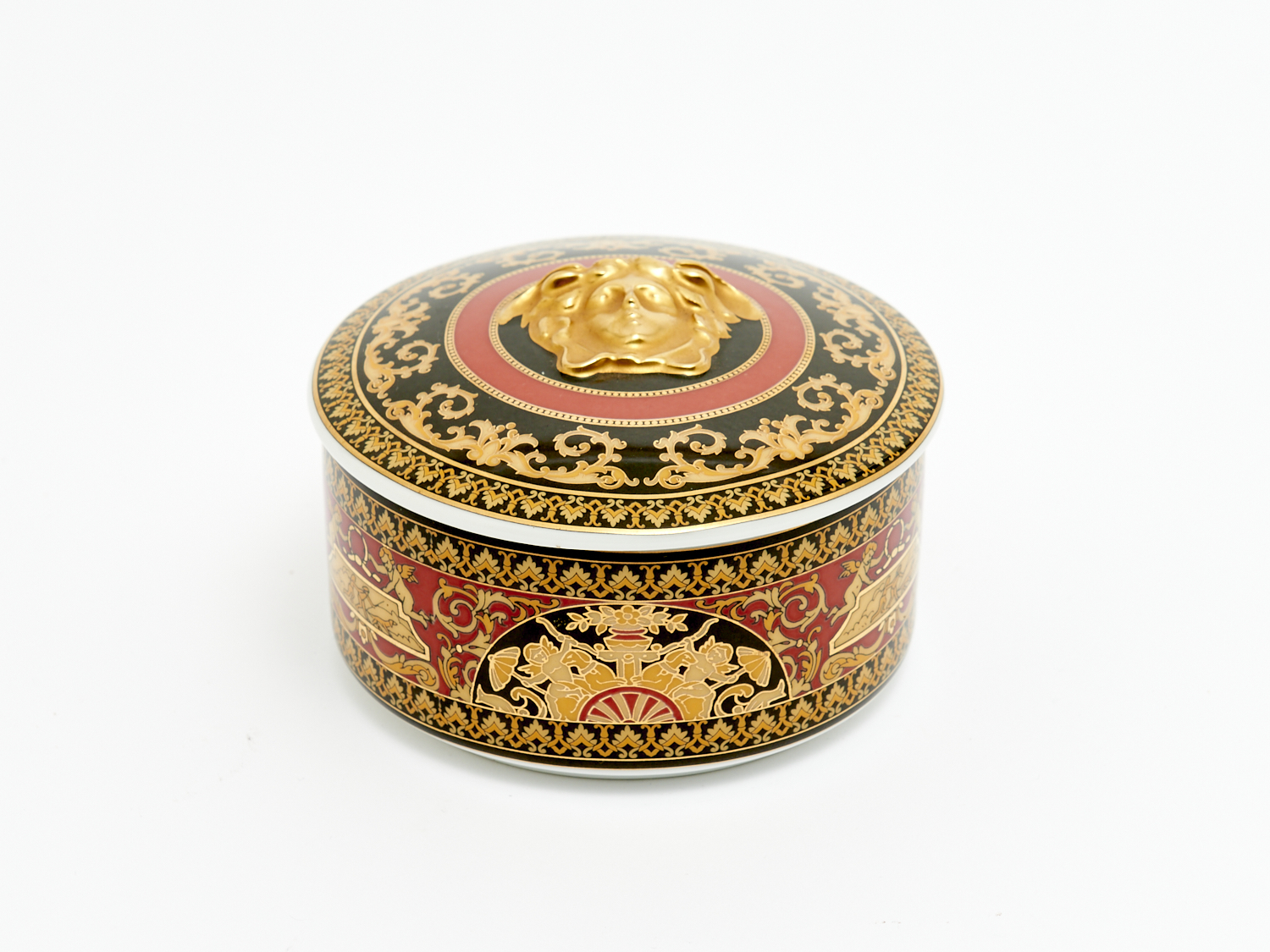 A VERSACE COVERED BOX H.7 X DIA.11CM , LEONARD JOEL LOCAL DELIVERY: SMALL