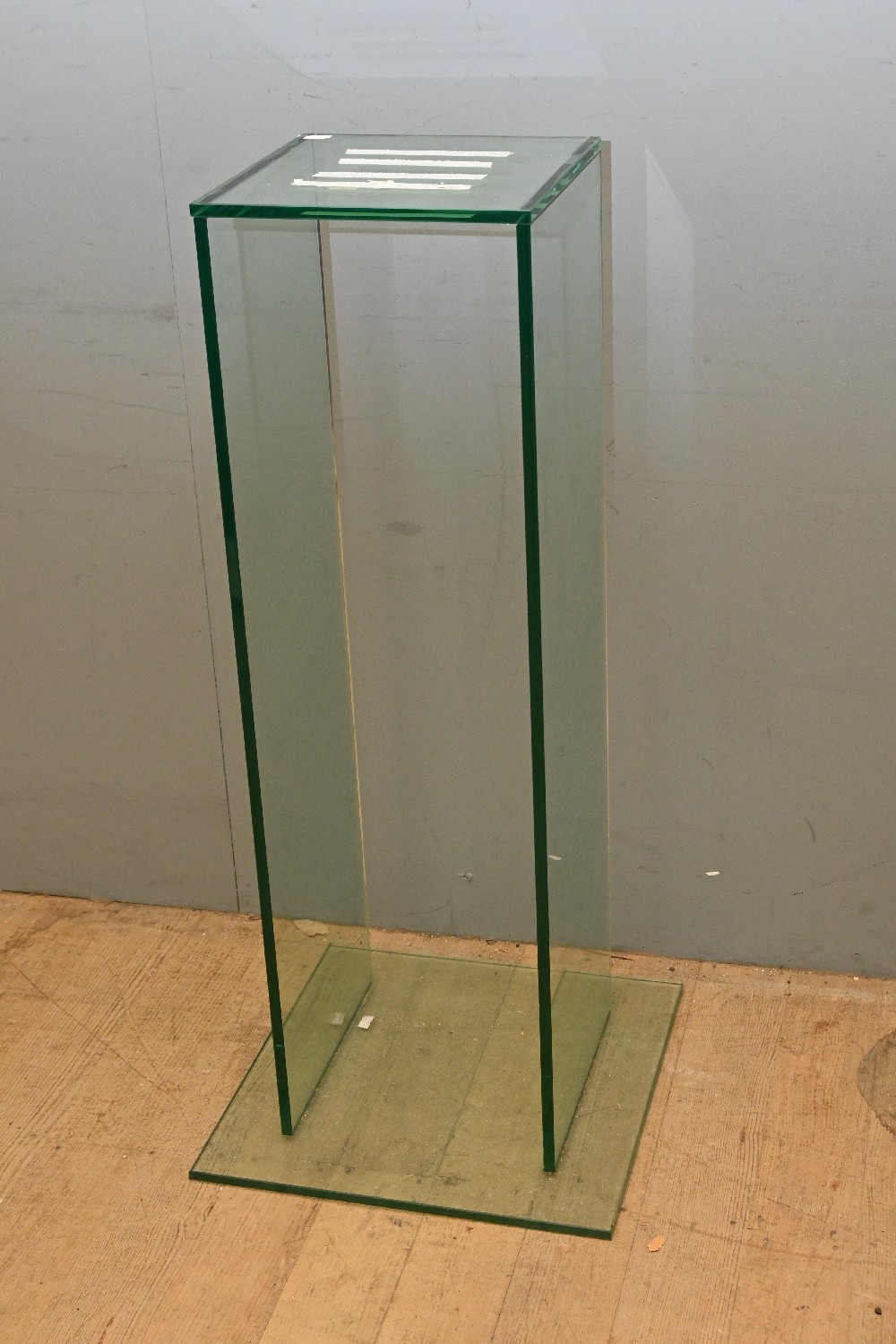 A CONTEMPORARY GLASS PEDESTAL (A/F) (100H X 45W X 45D CM) (PLEASE NOTE THIS HEAVY ITEM MUST BE REMOVED BY CARRIERS AT THE CUSTOMER'S EXPENSE. LEONARD JOEL STAFF CANNOT ASSIST CARRYING THIS ITEM) (X-LARGE ITEM)