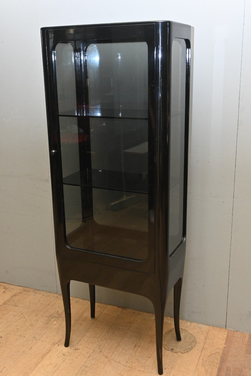 A CONTEMPORARY BLACK-LACQUERED AND GLAZED DISPLAY CABINET (161H X 60W X 34D CM) (PLEASE NOTE THIS HEAVY ITEM MUST BE REMOVED BY CARRIERS AT THE CUSTOMER'S EXPENSE. LEONARD JOEL STAFF CANNOT ASSIST CARRYING THIS ITEM) (X-LARGE ITEM)