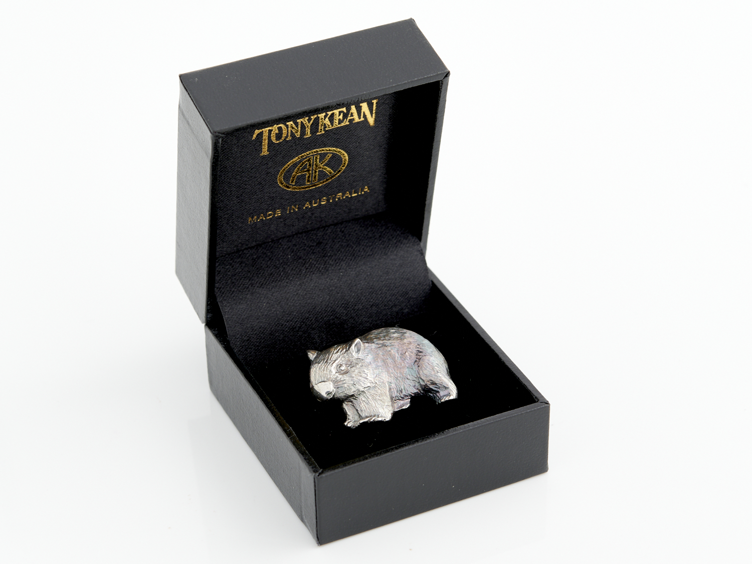 TONY KEAN, A WOMBAT BROOCH IN STERLING SILVER, 26 X 20MM, BOXED
