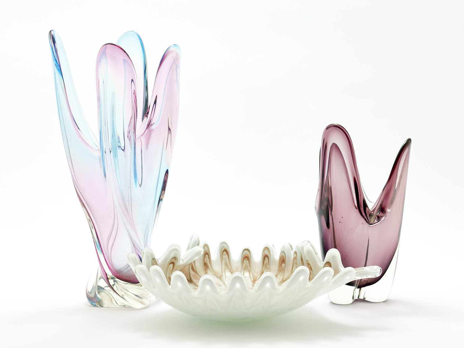 THREE PIECES OF ART GLASS H.37CM (TALLEST), LEONARD JOEL LOCAL DELIVERY: MEDIUM
