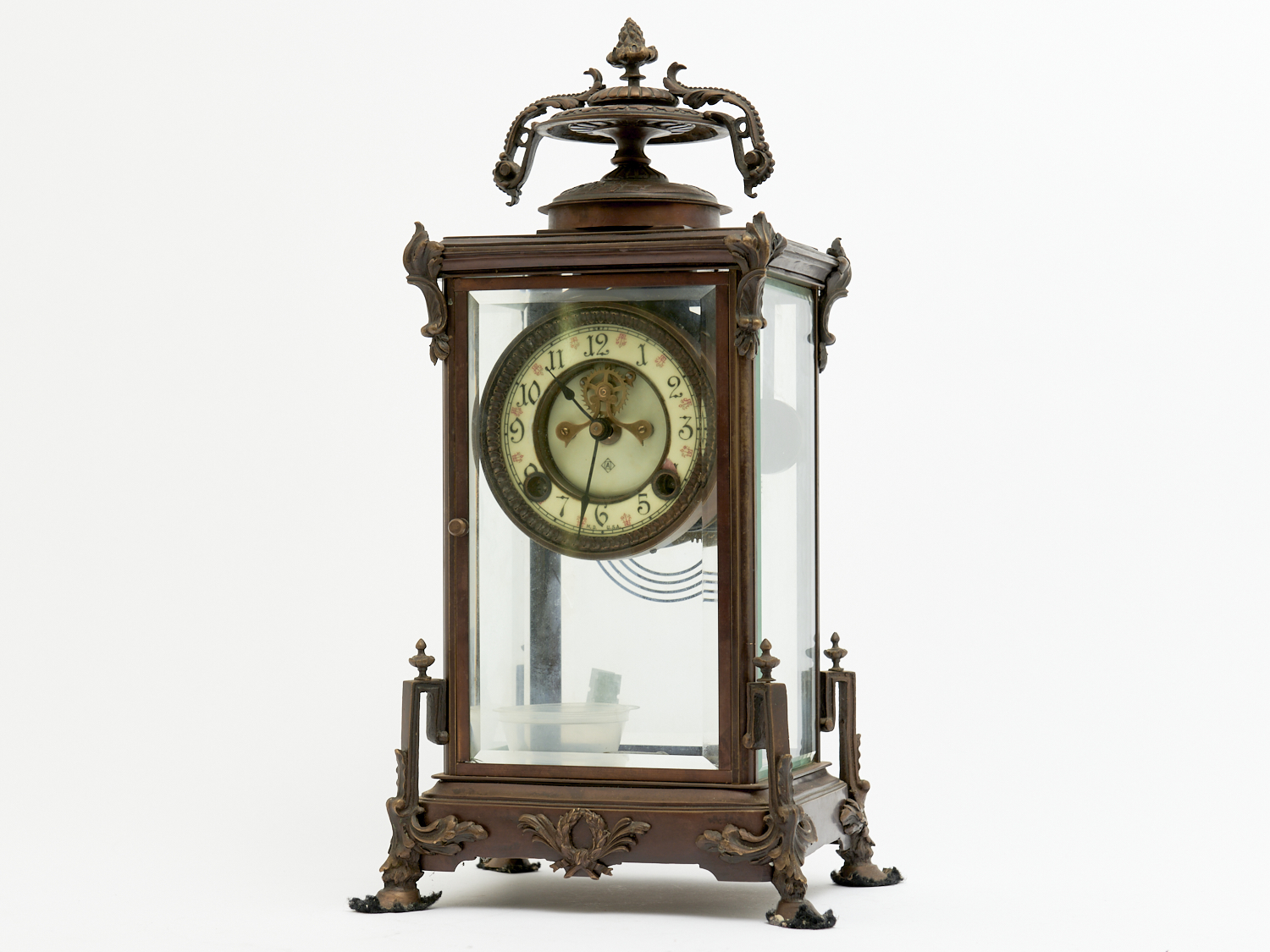 AN AMERICAN MANTLE CLOCK IN A GLAZED COPPER FINISHED CASE H.41CM, LEONARD JOEL LOCAL DELIVERY: MEDIUM