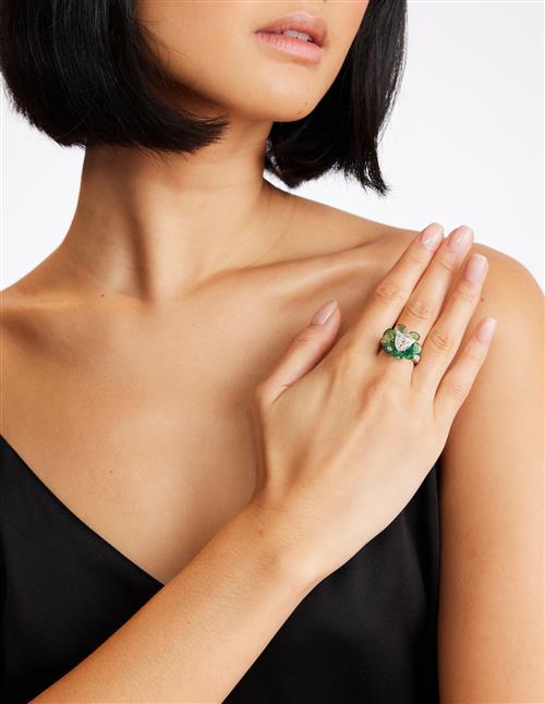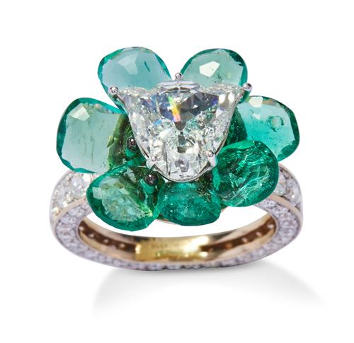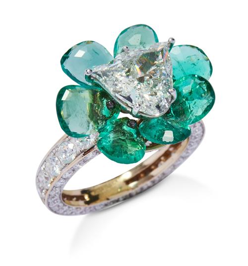 EMERALD AND DIAMOND FLOWERHEAD RING