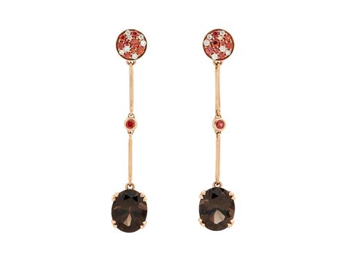 MAUBOUSSIN, A PAIR OF SMOKY QUARTZ, SAPPHIRE AND DIAMOND 'PLAISIR D'AMOUR' EARRINGS IN 18CT ROSE GOLD,