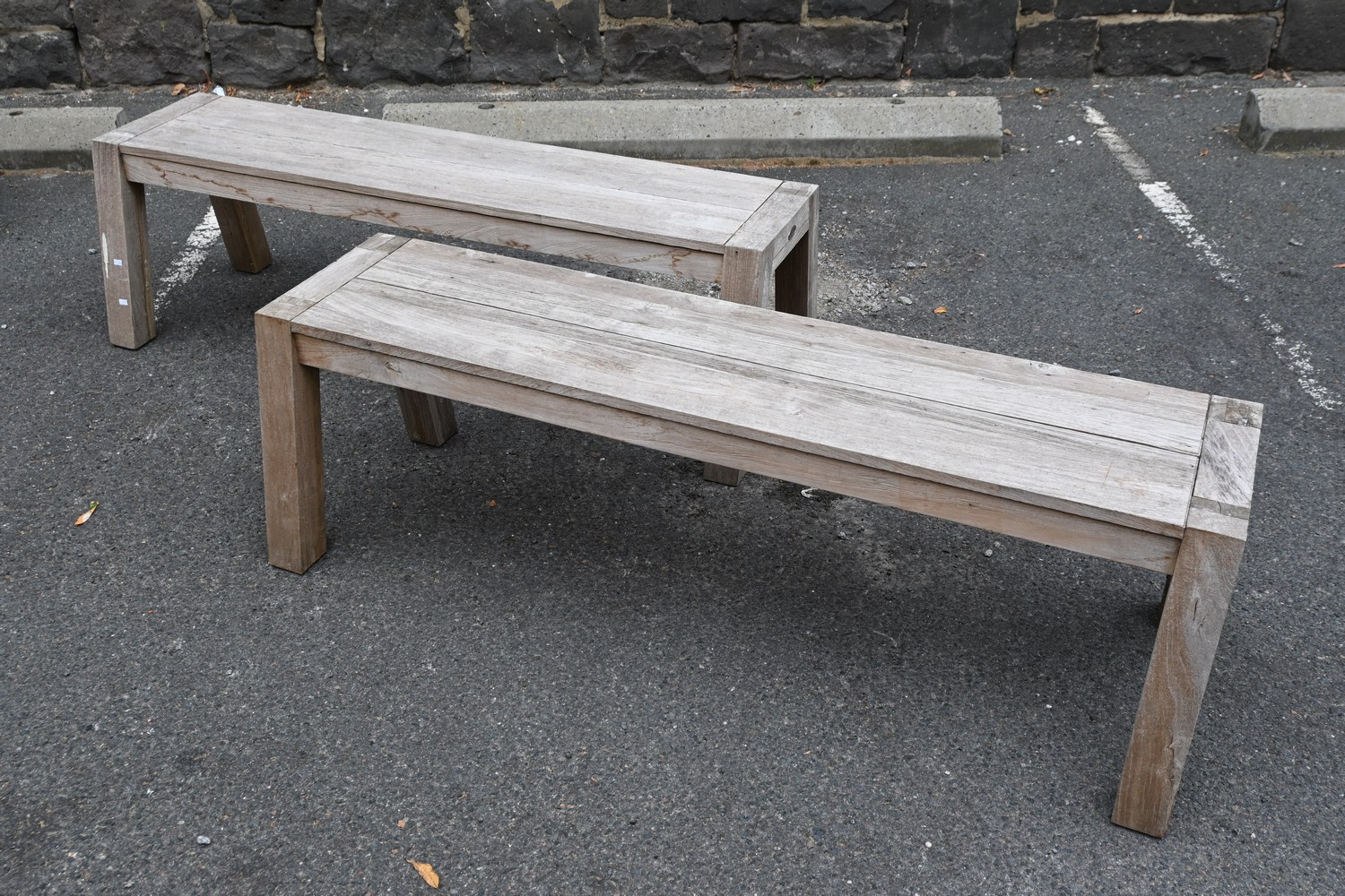 A PAIR OF SCHOTTS BENCHES (46H X 150W X 51D CM) (PLEASE NOTE THIS HEAVY ITEM MUST BE REMOVED BY CARRIERS AT THE CUSTOMER'S EXPENSE. LEONARD JOEL STAFF CANNOT ASSIST CARRYING THIS ITEM) (X-LARGE ITEM)
