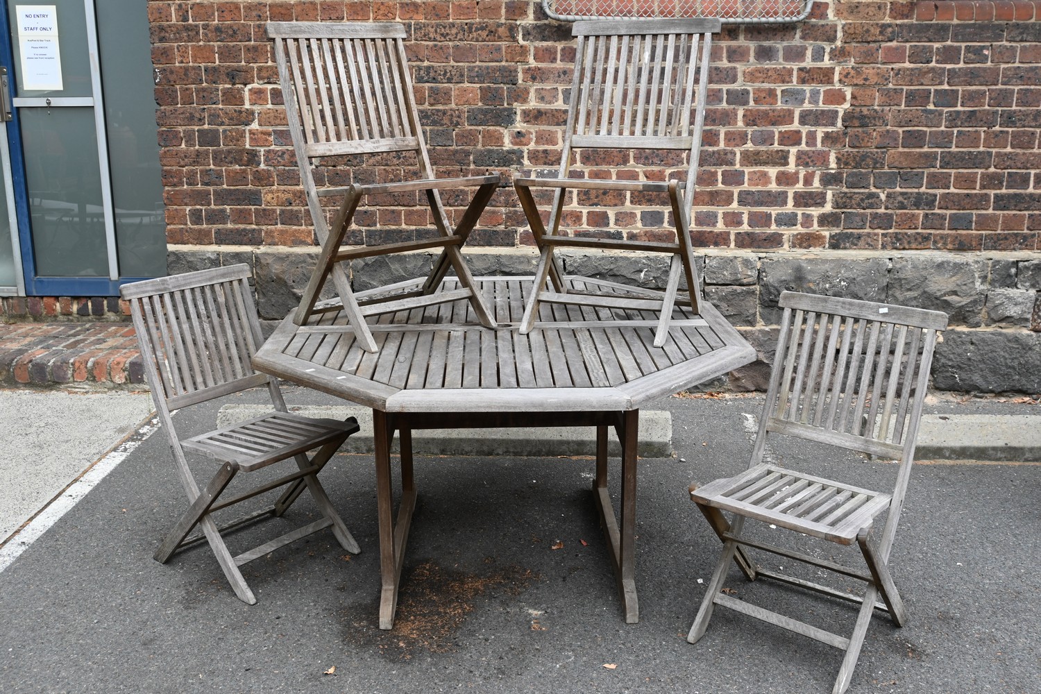 A FIVE PIECE OUTDOOR SETTING (A/F) (75H X 138W X 138D CM) (PLEASE NOTE THIS HEAVY ITEM MUST BE REMOVED BY CARRIERS AT THE CUSTOMER'S EXPENSE. LEONARD JOEL STAFF CANNOT ASSIST CARRYING THIS ITEM) (X-LARGE ITEM)