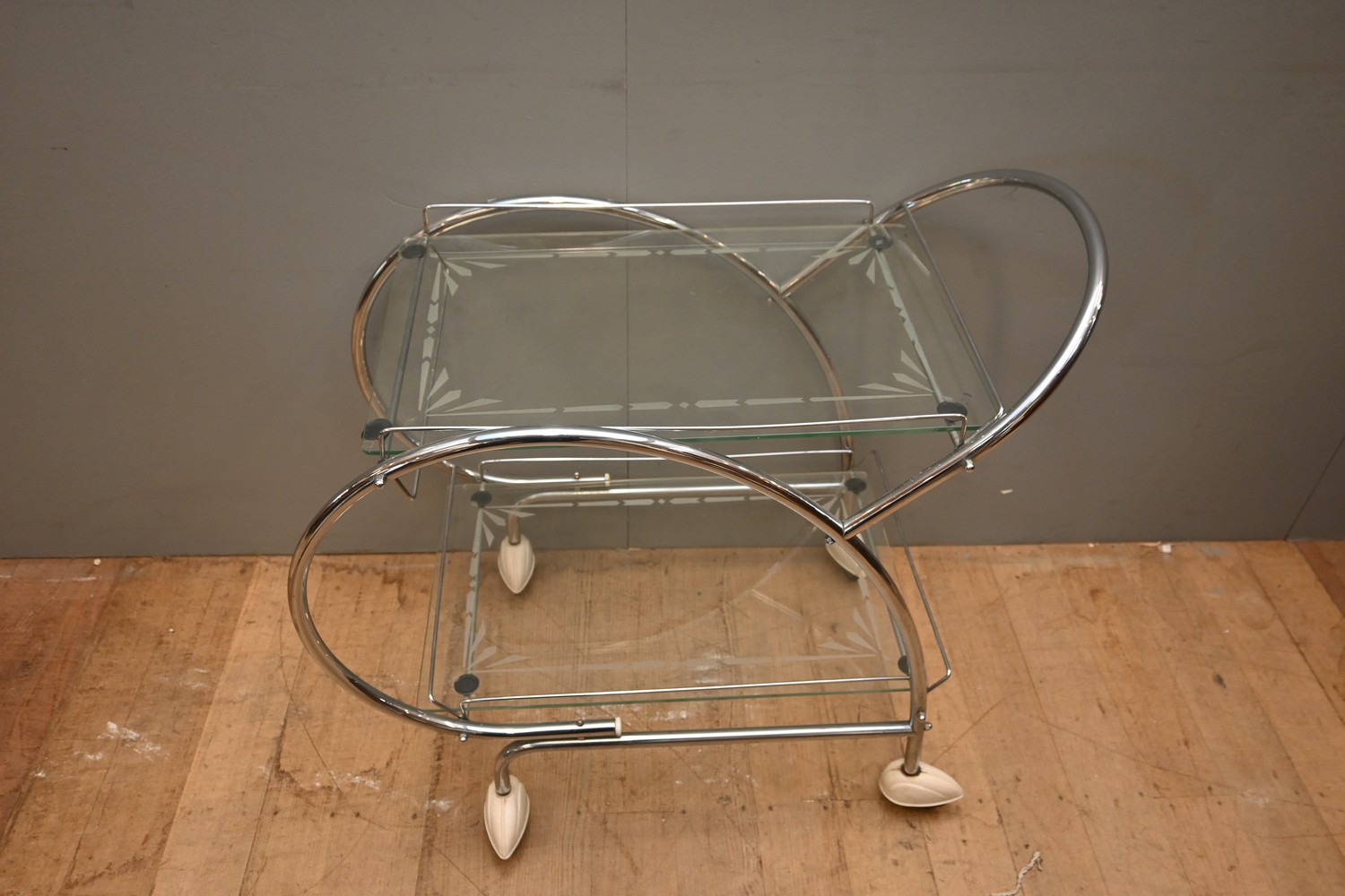 AN ART DECO DRINKS TROLLEY (A/F) (76H X 77W X 46D CM) (LEONARD JOEL DELIVERY SIZE: X-LARGE)