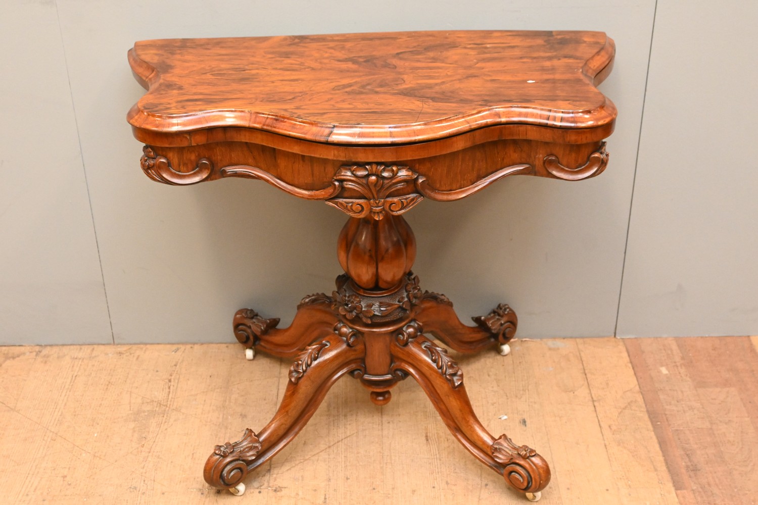 A VICTORIAN ROSEWOOD GAMES TABLE (A/F) (74H X 94W X 43D CM) (LEONARD JOEL DELIVERY SIZE: X-LARGE)
