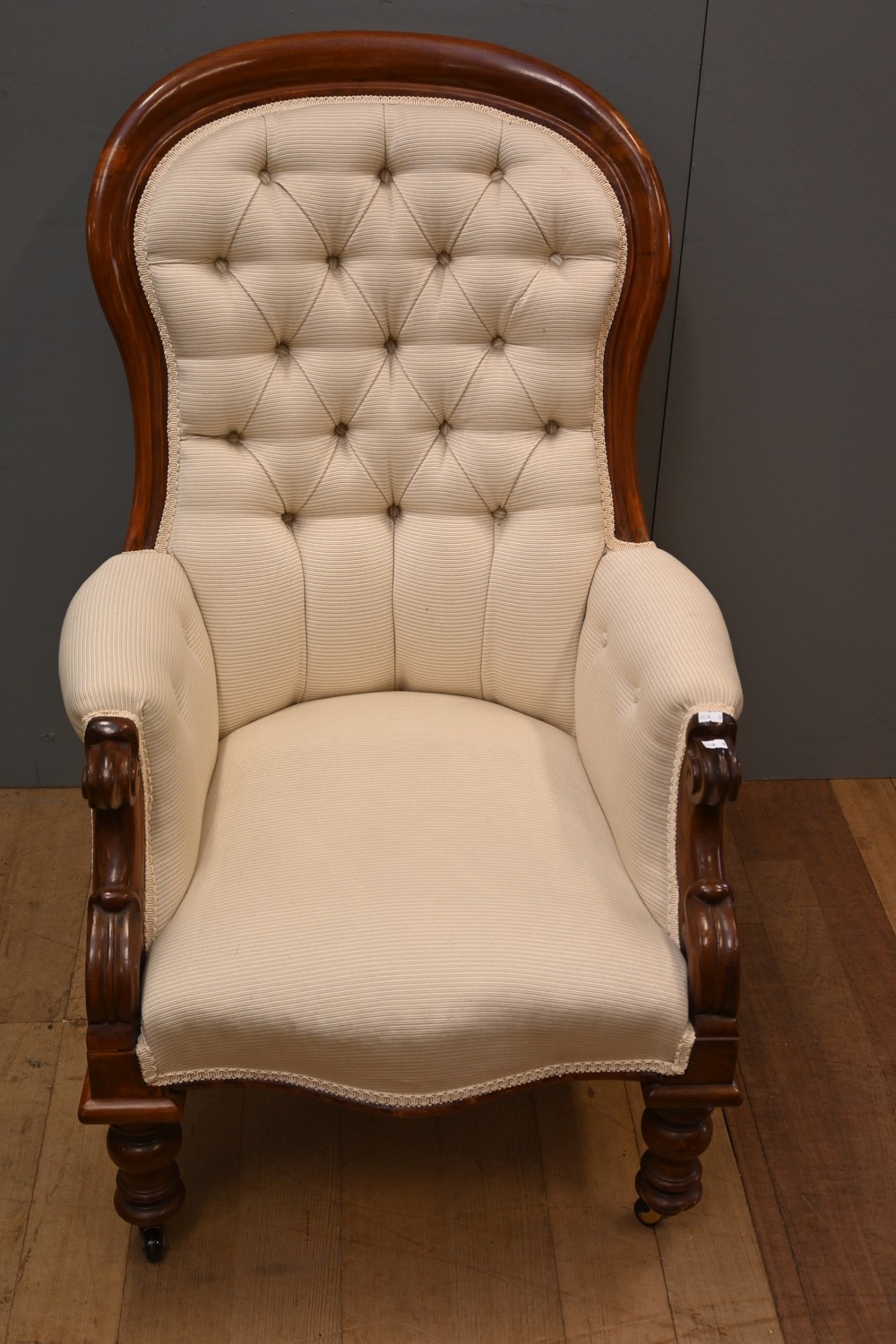 A VICTORIAN AUSTRALIAN CEDAR AND UPHOLSTERED ARMCHAIR (100H X 60W X 80D CM) (LEONARD JOEL DELIVERY SIZE: X-LARGE)