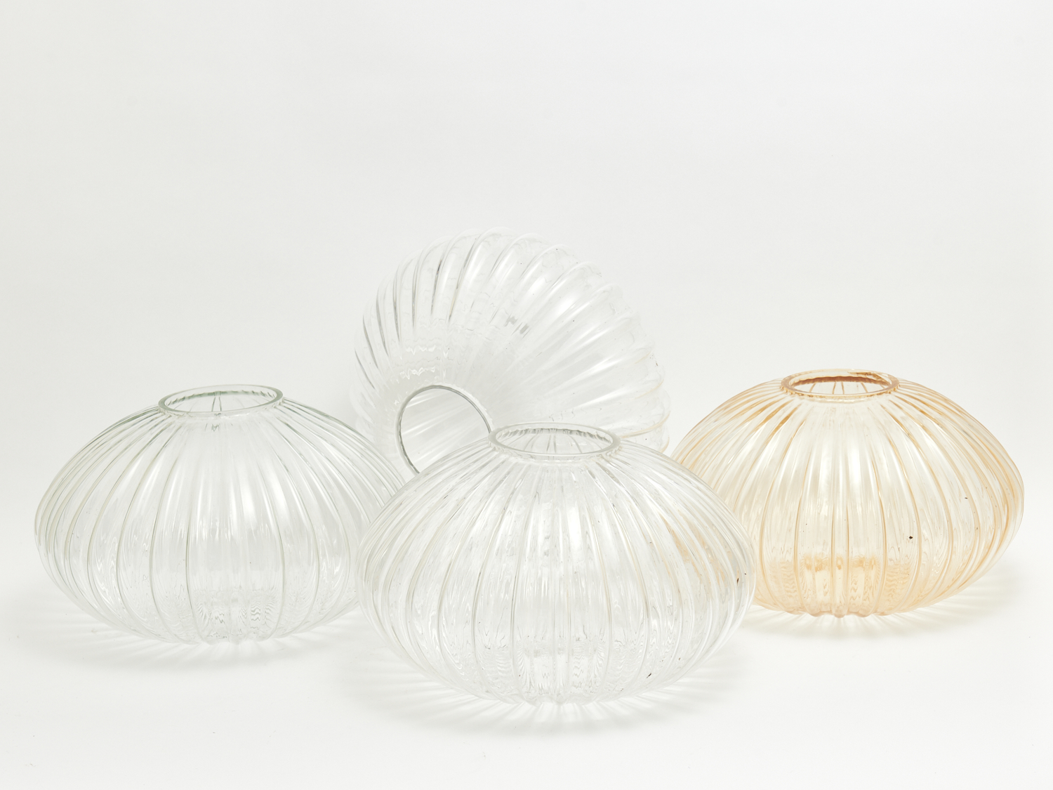 FOUR LARGE FLUTED CLEAR GLASS LIGHT SHADES (A/F) DIA.34CM, LEONARD JOEL LOCAL DELIVERY: LARGE