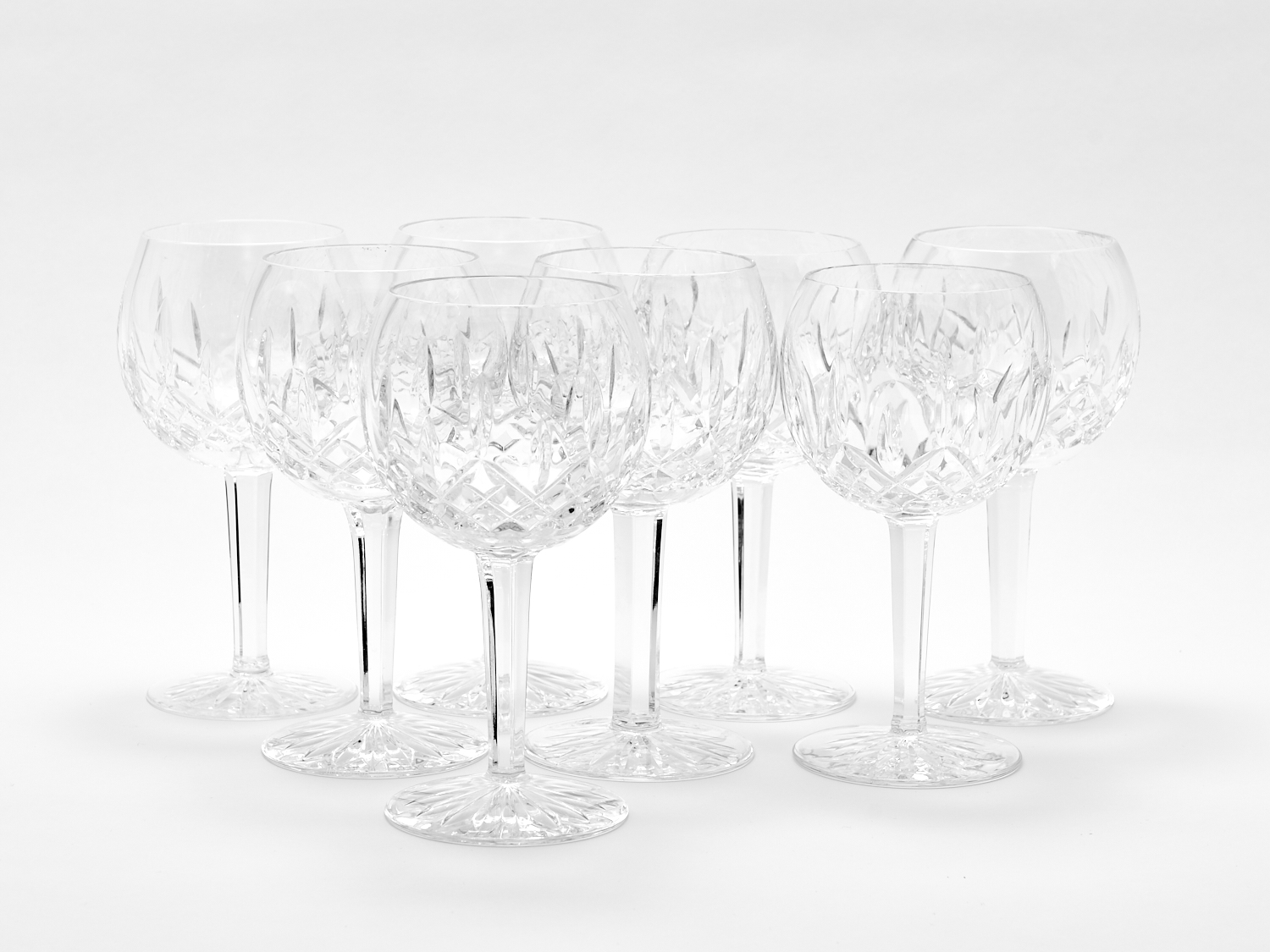 SET OF EIGHT LARGE WATERFORD LISMORE NOUVEAU PATTERN HOCK STEMS H.19.5CM, LEONARD JOEL LOCAL DELIVERY: MEDIUM