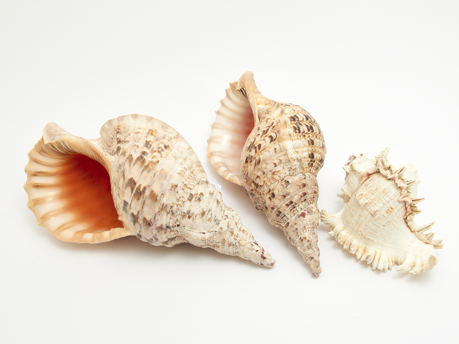 THREE LARGE SHELLS L.41CM (TALLEST), LEONARD JOEL LOCAL DELIVERY: SMALL