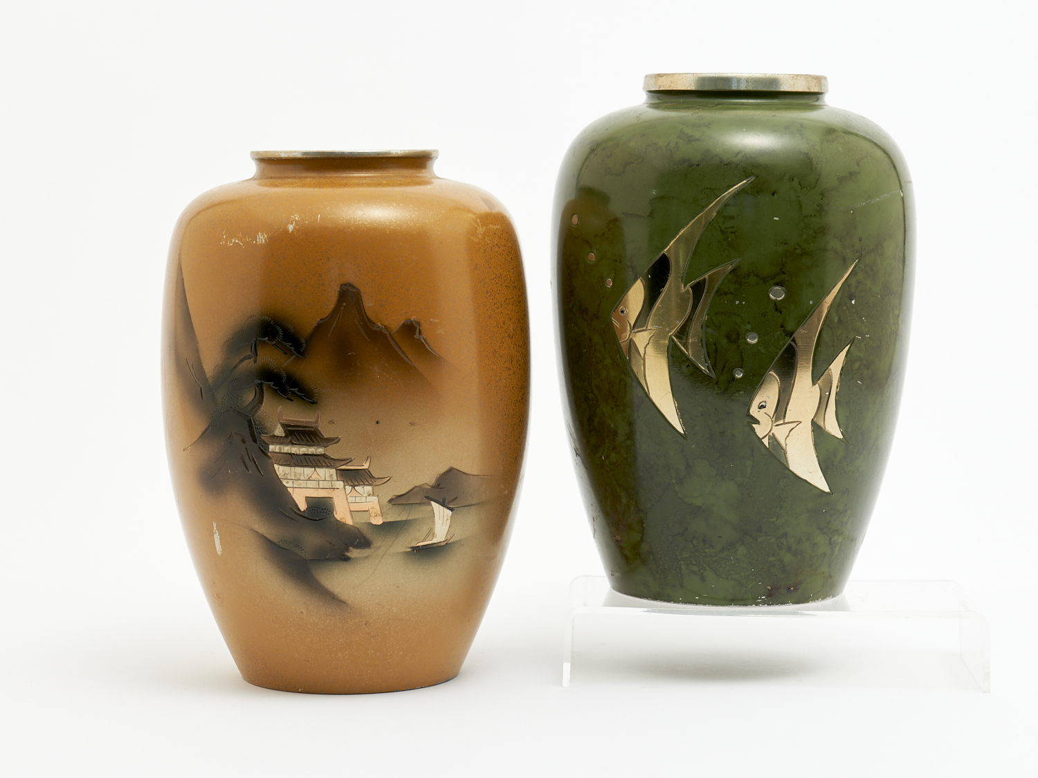 TWO ART DECO STYLE ANODISED VASES, BOTH SIGNED, H.25.5CM, LEONARD JOEL LOCAL DELIVERY: SMALL