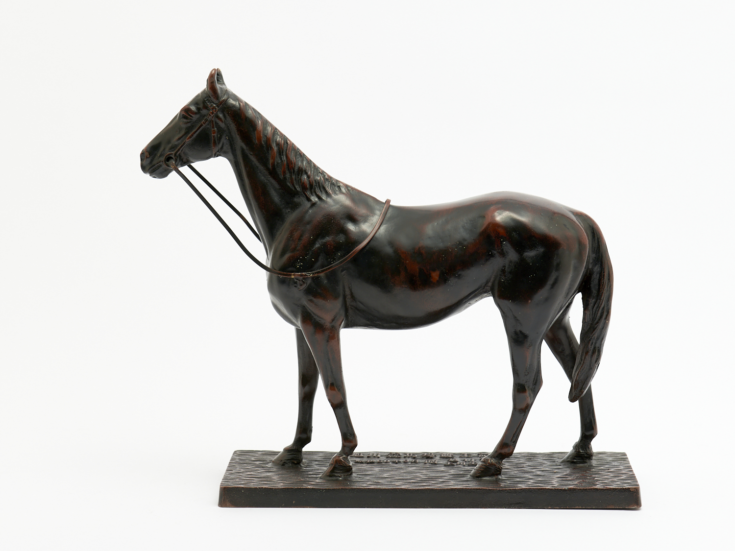 AN ASIAN CAST METAL FIGURE OF A THOROUGHBRED HORSE, SIGNED H.31 X L.35 X W.11CM, LEONARD JOEL LOCAL DELIVERY: MEDIUM