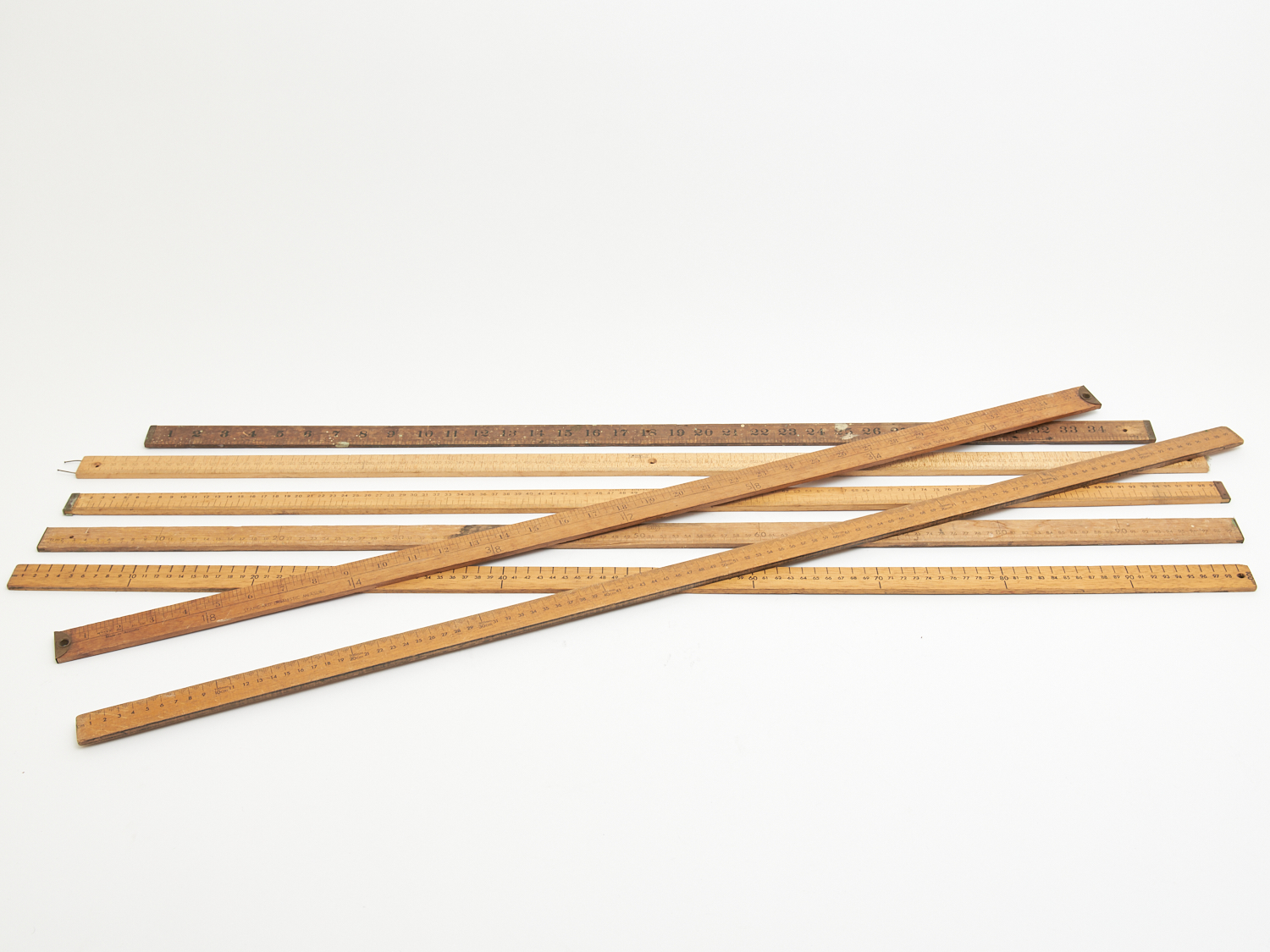 A COLLECTION OF VINTAGE WOODEN METER RULERS L.114CM, LEONARD JOEL LOCAL DELIVERY: SMALL