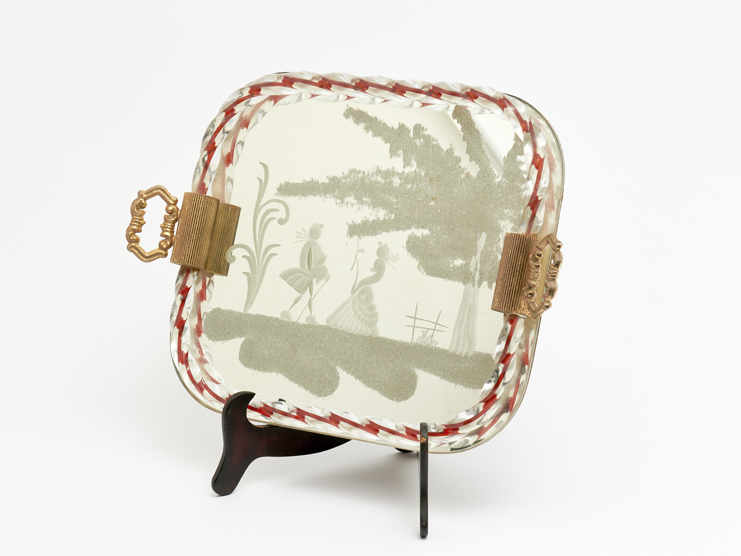 AN ITALIAN MIRRORED EDGE AND GLASS TRAY H.37CM, LEONARD JOEL LOCAL DELIVERY: MEDIUM