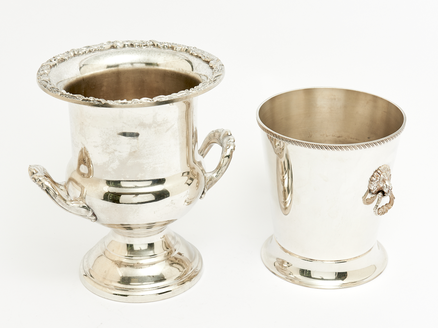 TWO ENGLISH SILVER PLATE TWO HANDLED WINE/ICE BUCKETS H.27CM, LEONARD JOEL LOCAL DELIVERY: MEDIUM